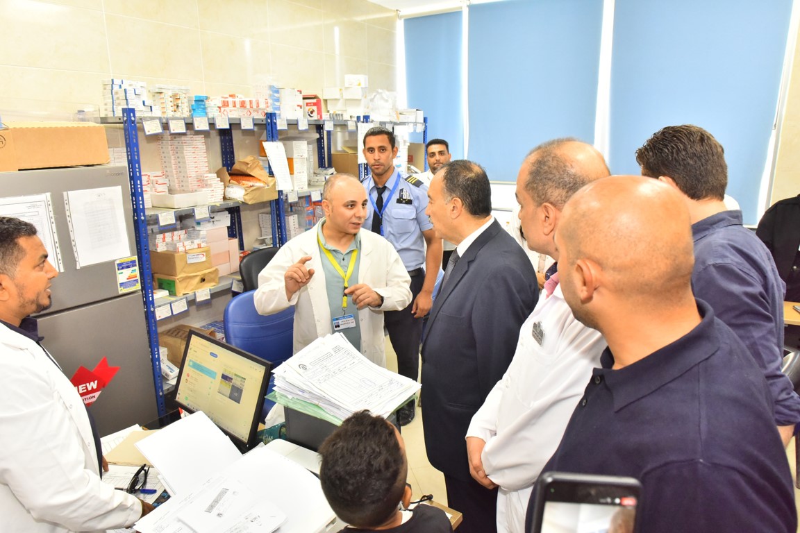 كما تفقد الصيدلية للاطمئنان على توافر الأدوية مشدداً على ضرورة الإبلاغ فورا عن أية احتياجات أو نواقص لسرعة توفيرها.