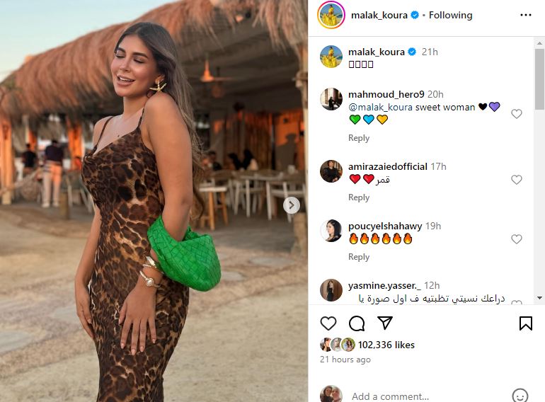 وبدت ملك قورة بإطلالة ساحرة، مواكبة لأحدث صيحات موضة فساتين صيف 2024، بنقشة الليوبارد، حيث ارتدت فستان طويل مجسم، عكس سحر قوامها تسحب البساط من تحت أقدام نجمات الفن بجمالها الساحر.