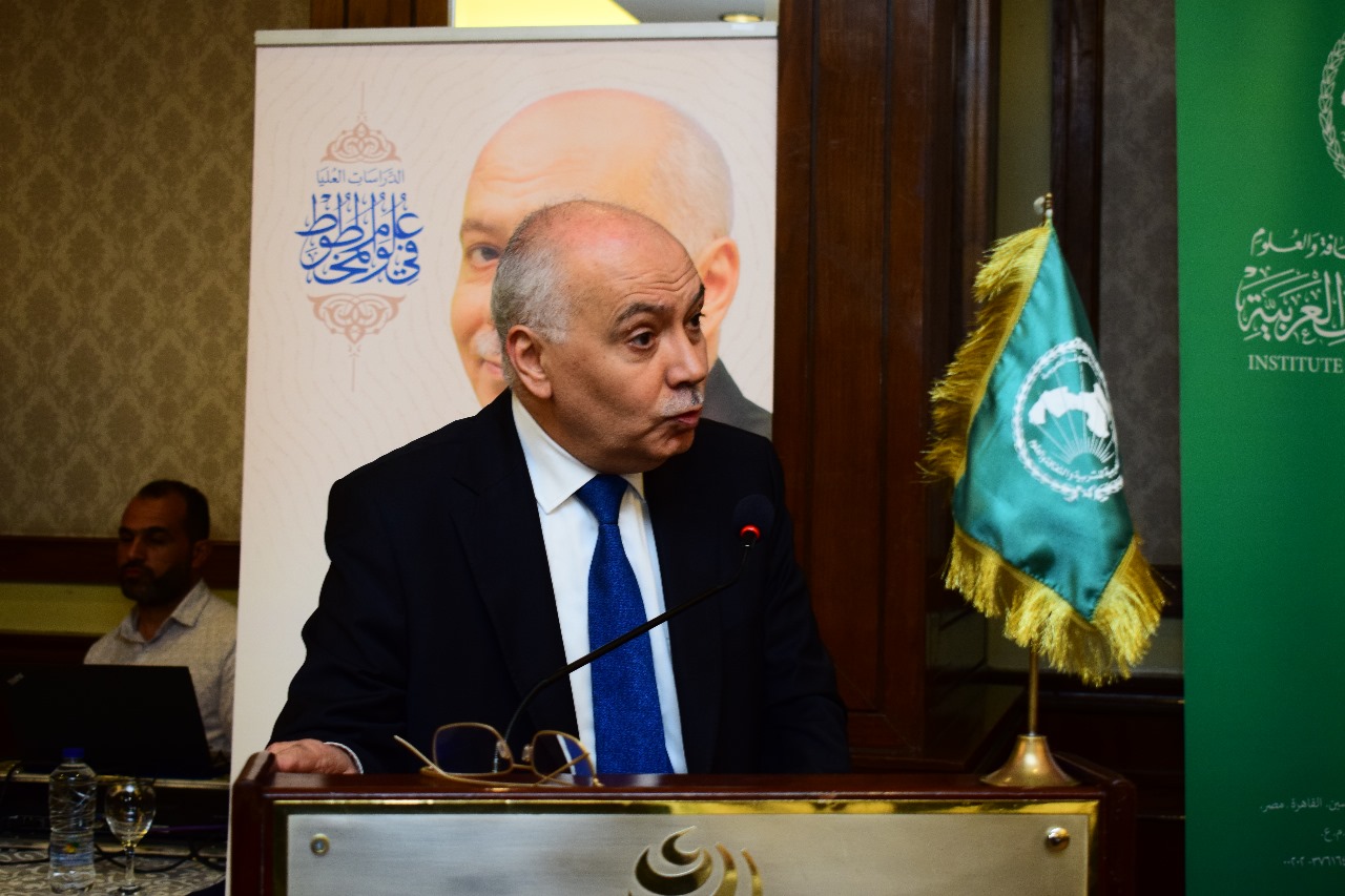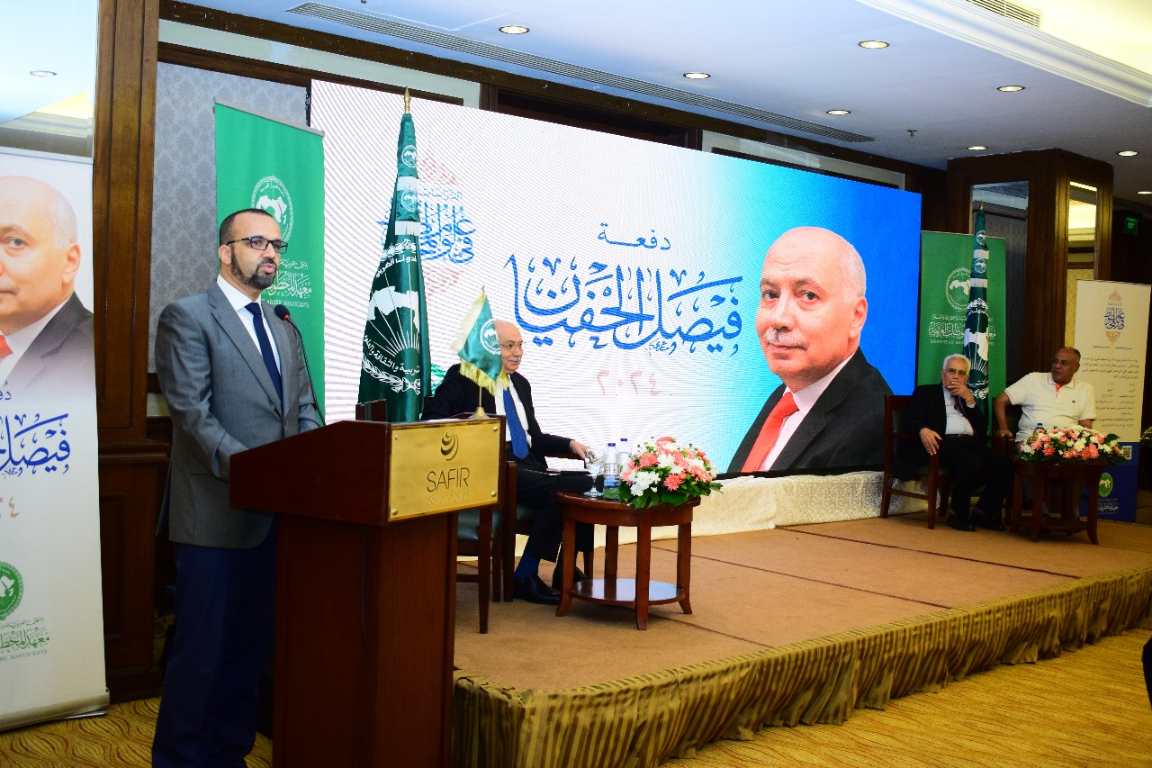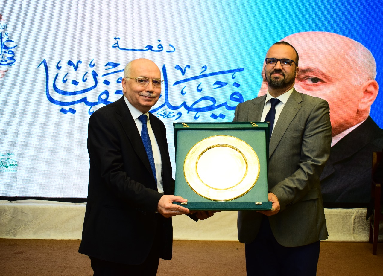ورحب أ.د مراد الريفي مدير المعهد في كلمته الافتتاحية بالأستاذ الدكتور فيصل الحفيان ومن حضر من المتقاعدين الذين تم تكريمهم في هذه الاحتفالية والحضور الكريم، كما أعربَ عن سعادته بهذا التقليدِ السنوي الذي يجتمعُ فيه كوكبةٌ من أهلِ العلمِ، يحتفونَ بتخريجِ دفعةٍ جديدةٍ من باحثي وطلاب علوم المخطوط الذين وفدوا إلى المعهد مع تنوعِ اختصاصاتهم ودولهم ينهلون من معينه، ويستفيدون من خبراته التي استمرت قُرابةَ الثمانون عاما، ثُم قامَ بَعدها مديرُ المعهدِ بتسليمِ درع الدفعة التكريمي إلى الدكتور فيصل الحفيان، قبل أن يسلم دروع التكريم للموظفين المتقاعدين.