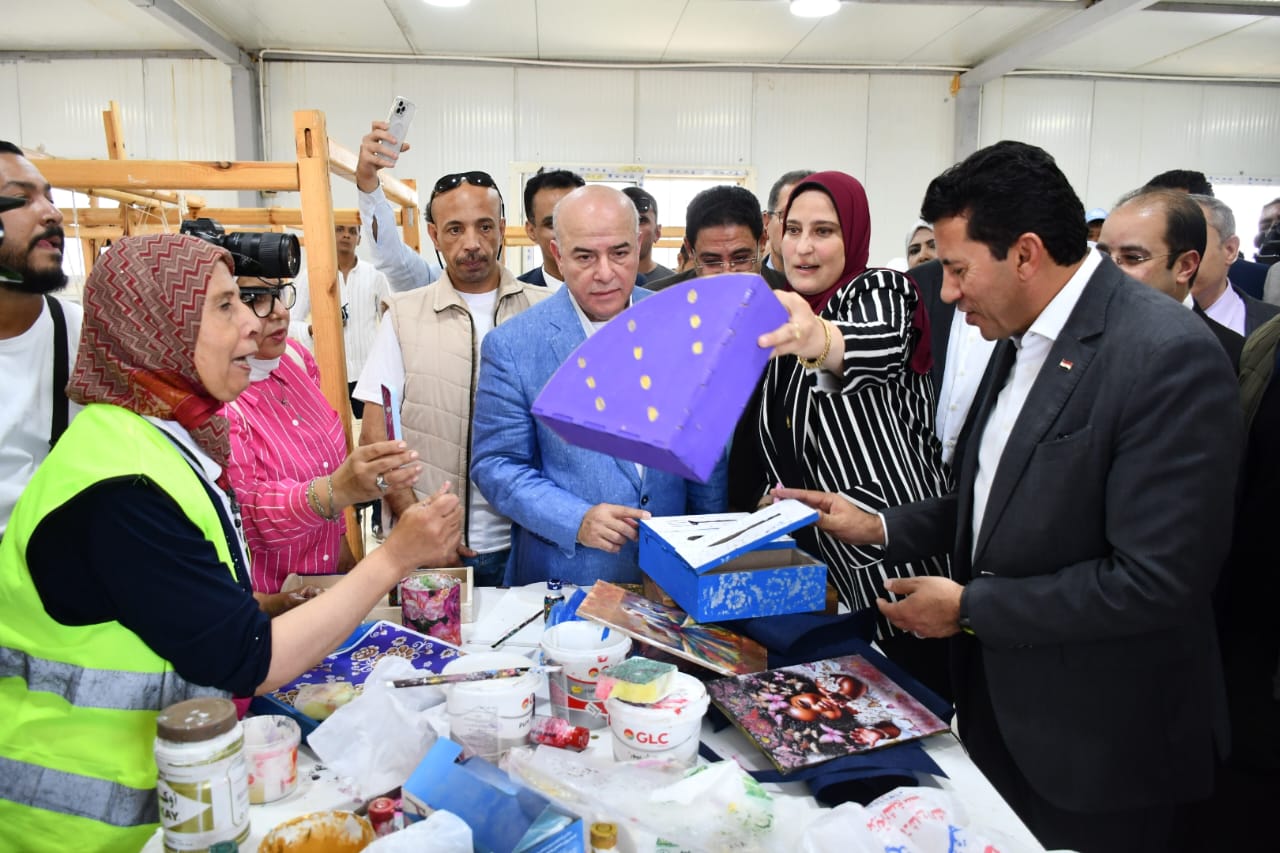 وزير الرياضة ونائب محافظ القاهرة يفتتحان معرضًا للمنتجات بمركز شباب التكوين المهني بالأميرية