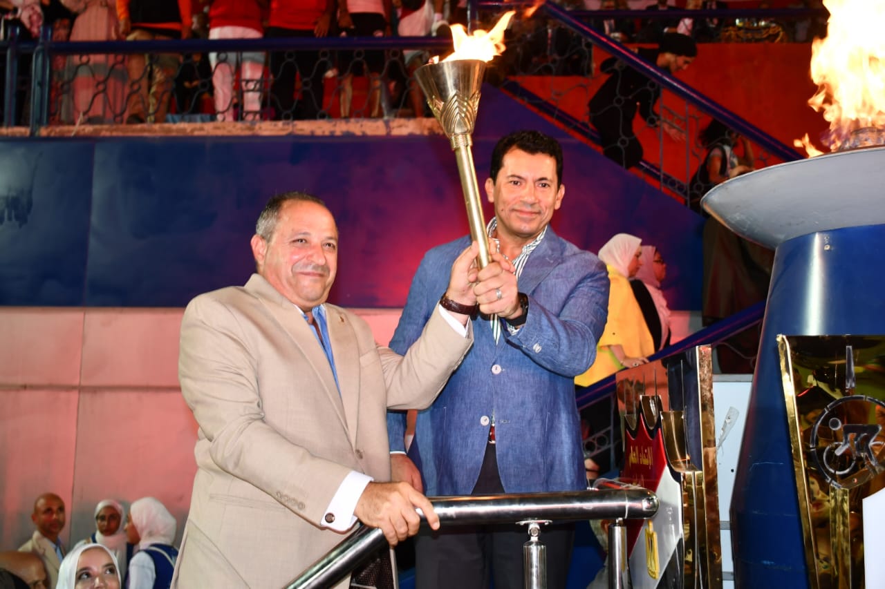 وزير الشباب والرياضة ومحافظ بورسعيد يطلقان شعلة بطولة الجمهورية للشركات