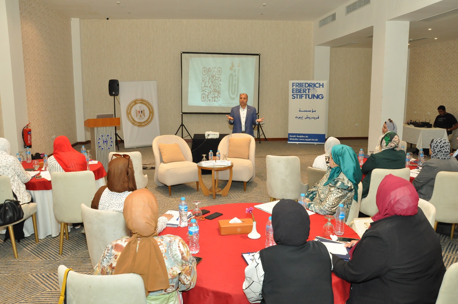 تنفيذًا لتوجيهات الدكتورة ياسمين فؤاد وزيرة البيئة بالعمل على تعزيز دور المرأة وبذل مزيد من الجهود لزيادة مشاركتها في حماية البيئة، نظمت وزارة البيئة بالتعاون مع مؤسسة فريدريش إيبرت ورشة العمل حول "تمكين المرأة اقتصاديا في المشروعات البيئية" بمدينة بورفؤاد.