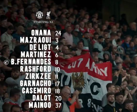 أعلن الجهاز الفني للفريق الأول لكرة القدم بنادي مانشستر يونايتد، التشكيل الرسمي لمواجهة ليفربول، ضمن منافسات الدوري الإنجليزي الممتاز لهذا الموسم 2024/2025.