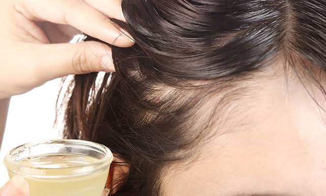 ضع الزيت على فروة الرأس والشعر، ثم دلك بلطف. اتركه لمدة ساعة على الأقل، أو يفضل تركه طوال الليل، ثم اشطفه بالشامبو. يساعد زيت الخروع في ترطيب الشعر وتعزيز نموه.