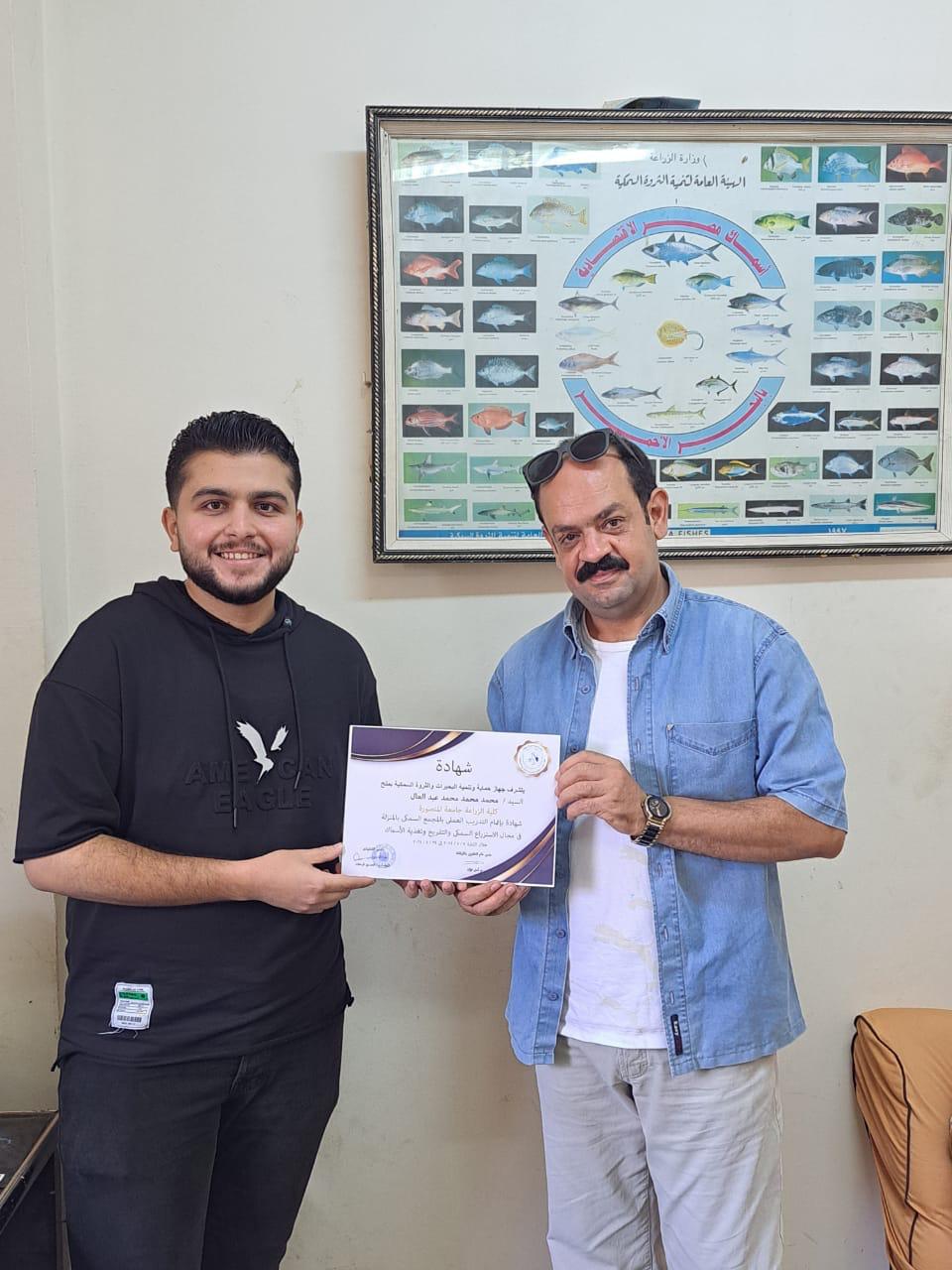 ومن جانبهم عبّر الطلاب عن شكرهم للسيد اللواء الحسين فرحات، المدير التنفيذى للجهاز، ولإدارة الكلية وفريق عمل مزرعة المنزلة السمكية على هذه الفرصة القيمة التي لم تتاح لهم من قبل، اّملين في إتاحة المزيد من الفرص التدريبية في مواقع إنتاجية أخرى.