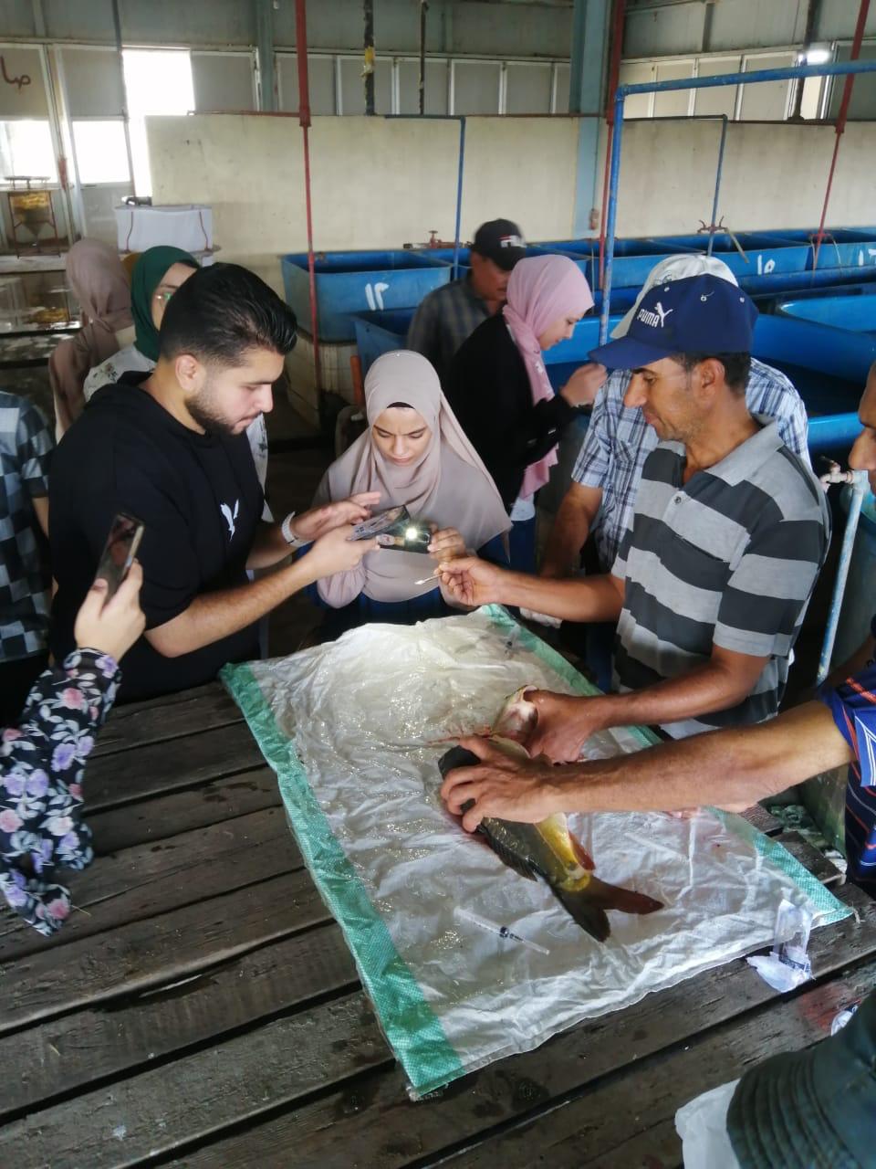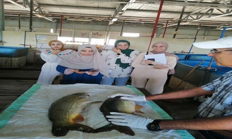 واستمعوا لشرح دقيق ووافٍ عن كيفية انشاء المفرخات السمكية وكيف يتم اختيار الأمهات ذات الجودة العالية للبدء في عملية التفريخ وكيف يتم التعامل مع الزريعة وتم تدريبهم عمليًا على كيفية فحص وتشريح عينات أسماك البلطي وكيفية سحب عينة دم منها لإجراء التحاليل اللازمة لها ومعرفة مدى إصابتها بأمراض وخلافه، وتشريح اسماك المبروك الذهبي للتدريب على كيفية استخراج الغدة النخامية وحفظها.