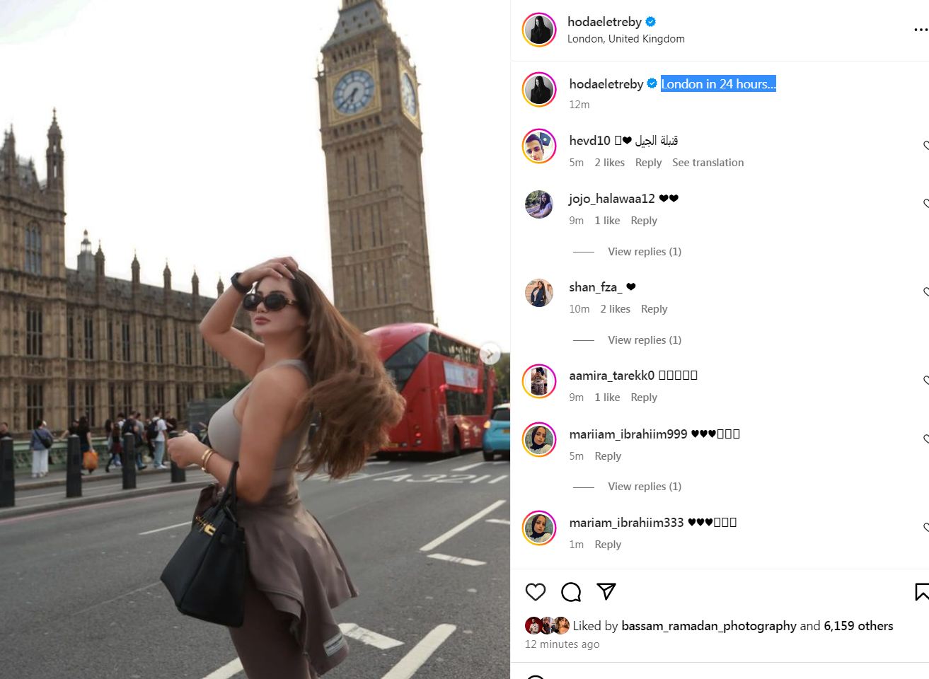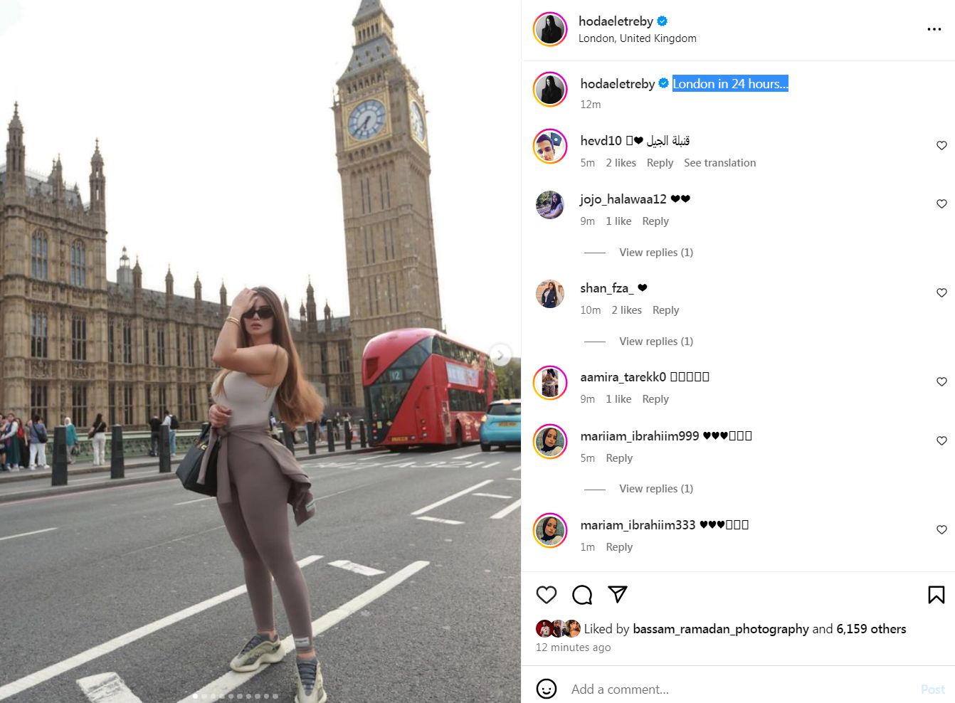 نشرت الفنانة هدى الإتربي مجموعة من أحدث إطلالاتها عبر حسابها الشخصي بموقع تبادل الفيديوهات والصور الأشهر إنستجرام، خلال قضائها أجازتها الصيفية في دولة لندن.