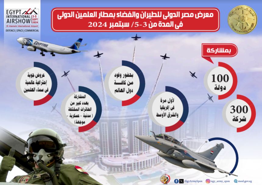تحت رعاية الرئيس عبد الفتاح السيسى، رئيس الجمهورية القائد الأعلى للقوات المسلحة، تنطلق غداً الثلاثاء، فعاليات معرض مصر الدولى للطيران والفضاء 2024 فى نسخته الأولى.
