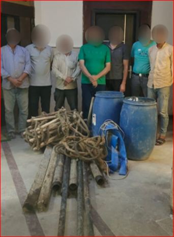 عقب تقنين الإجراءات تم ضبط المتهمين وبحوزتهم (الأدوات المستخدمة فى عملية الحفر والتنقيب) وتبين وجود حفرة بقطر 1 متر وبعمق 2 متر بالعقارالمُشار إليه، وإعترفوا بقيامهم بأعمال الحفر داخل العقاربقصد التنقيب غير المشروع عن الآثار وتم إتخاذ الإجراءات القانونية.