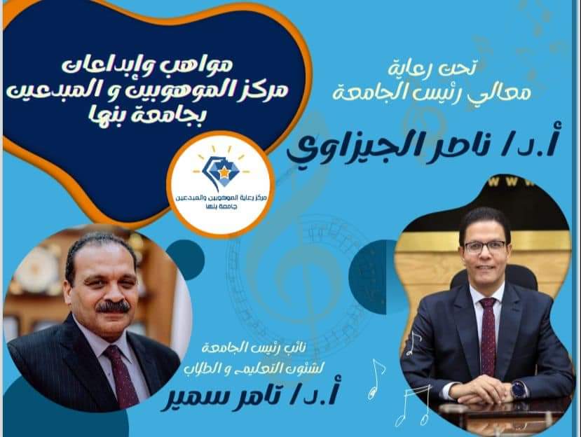 تحت عنوان (مواهب وإبداعات)، ينظم مركز رعاية الموهوبين والمبدعين بجامعة بنها حفلا فنيا.