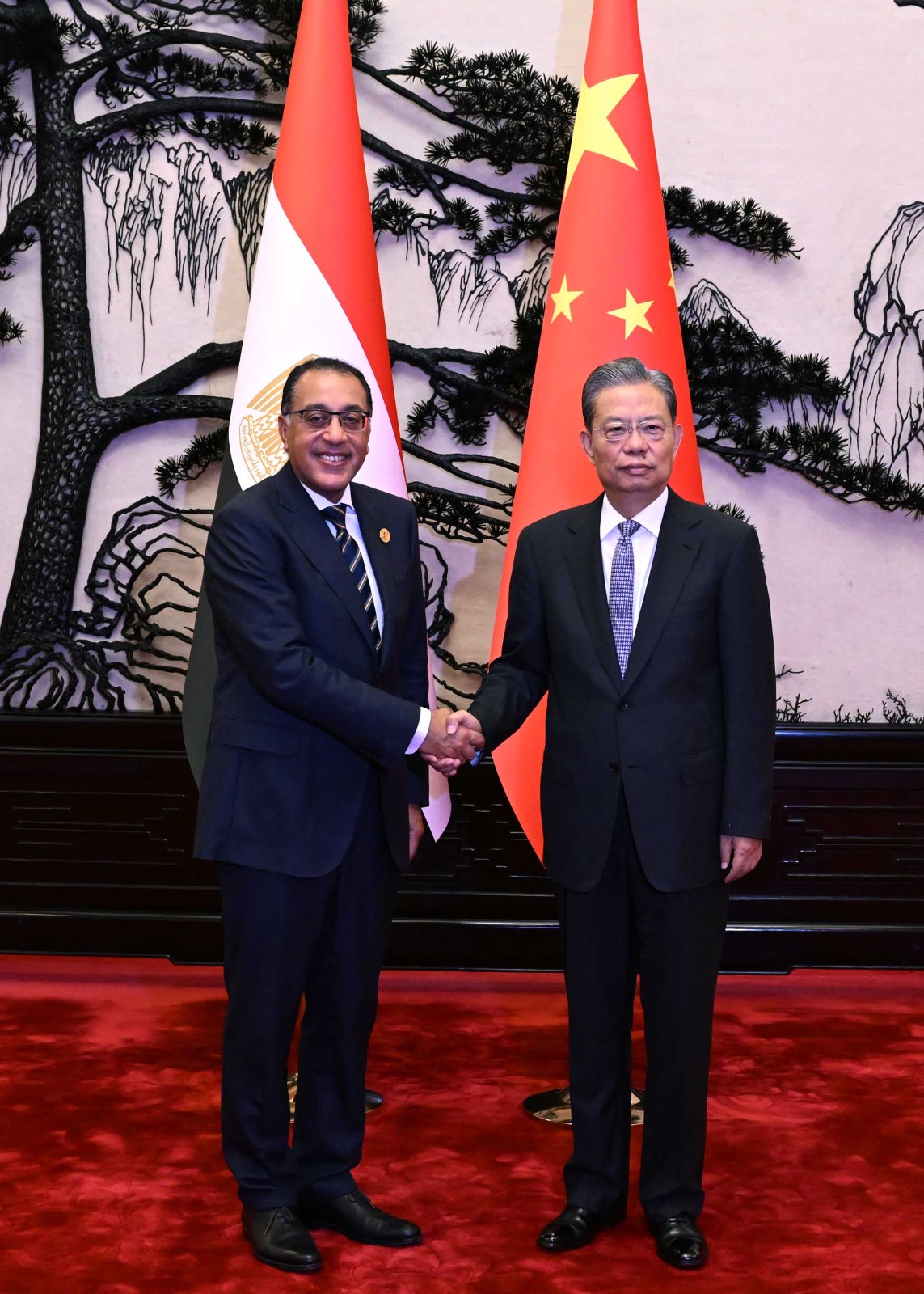 بدوره، رحّب تشاو له جي، رئيس اللجنة الدائمة للمجلس الوطني لنواب الشعب الصيني، بالدكتور مصطفى مدبولي، وهنأه بتجديد الثقة فيه وتوليه منصب رئيس الوزراء، وتكليفه بتشكيل الحكومة الجديدة من قِبل فخامة السيد الرئيس عبدالفتاح السيسي، رئيس الجمهورية.