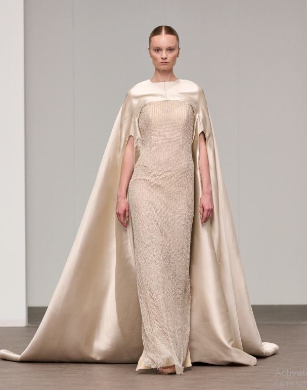 في خضم الفساتين الصيفية الفضفاضة، كان للموديلات مستقيمة القصة حصة كبيرة في مجموعة الماركة التي تشتهر بفساتين الكوتور الكلاسيكية؛ لذا لم نستغرب الحضور اللافت للقطع المزودة بكابات طويلة منبثقة عن الياقة العالية المطرزة للفستان مثل التصميم الفضي المغطى بالتطريز المشغول بحرفية عالية والمنسق مع صندل من لونه نفسه.