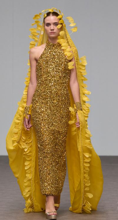 إبدع مصمم الأزياء إيهاب جريس في تقديم مجموعته المفعمة بالأناقة الحديثة التي تتناغم مع صاحبات الذوق الرفيع، فهو يؤمن بقوة وتأثير الأزياء في التعبير عن هوية وشخصية من ترتديها، قدم باقة رائعة من أجمل فساتين السهرة، ونعتقد أنها كانت كافية لنتعرف على آخر صيحات ربيع وصيف 2025، كما سيطرت الألوان الميتاليك على المجموعة، وكان للذهبي نصيب الأسد، كما تألفت لوحة الألوان من النغمات الباستيلية الهادئة.