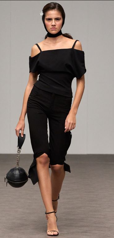 أعادت ماركة Weinsanto البناطيل الكابري إلى الواجهة، وارتدتها العارضات مع توب قصير من لونها نفسه مصمماً بأكمام قصيرة منسدلة عن الكتفين، وكانت أغطية الرأس المعقودة من الخلف والحقائب الصغيرة على شكل الكرة، المتمم الأمثل لهذا الستايل الصيفي المميز.