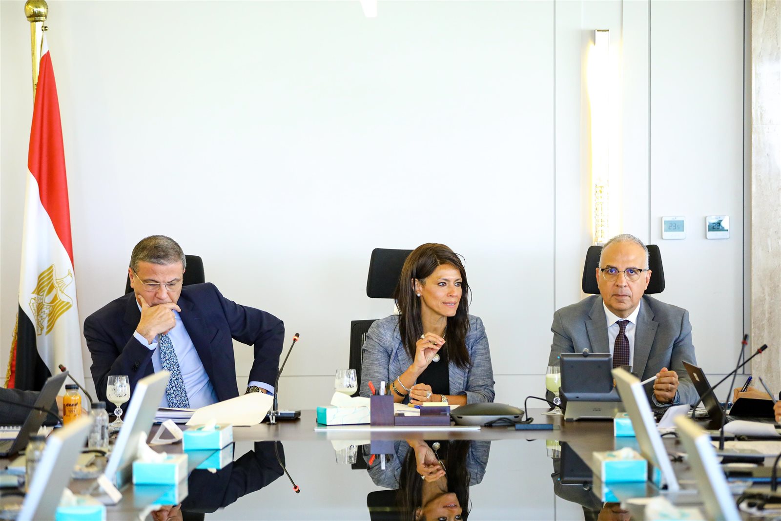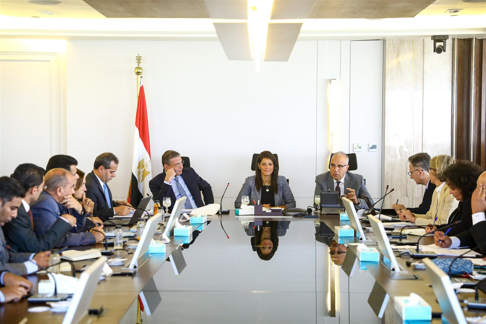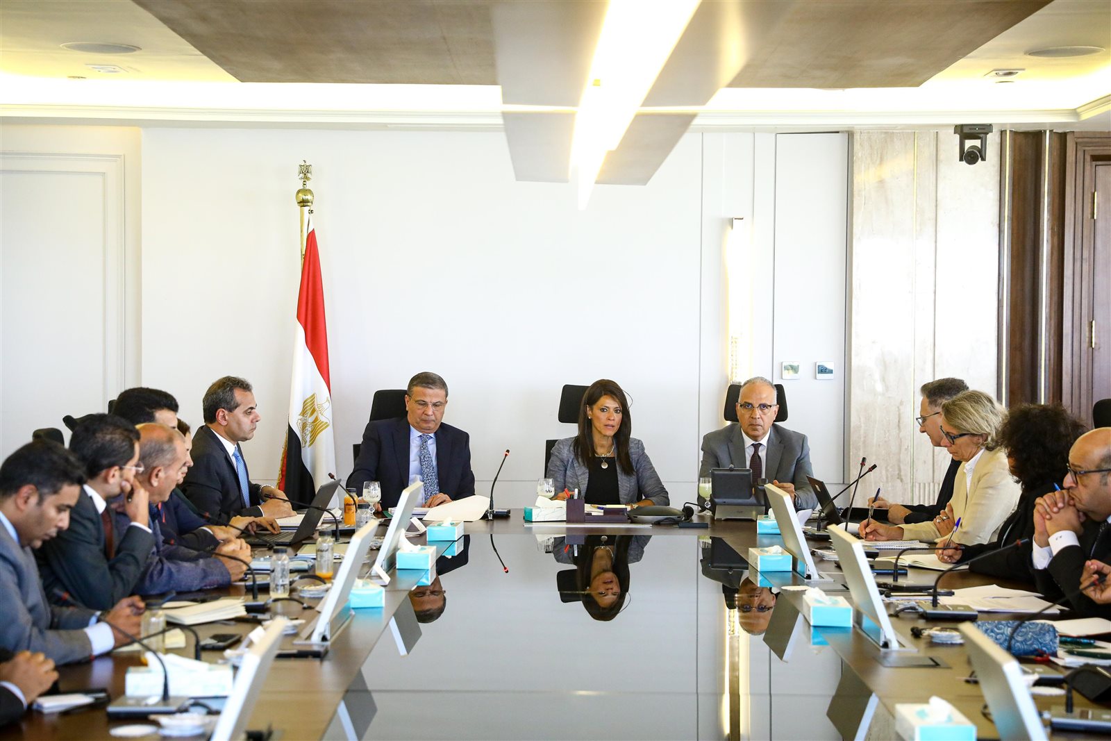 استقبلت الدكتورة رانيا المشاط، وزيرة التخطيط والتنمية الاقتصادية والتعاون الدولي، الدكتور هاني سويلم، وزير الموارد المائية والري، وعلاء فاروق، وزير الزراعة واستصلاح الأراضي، وبعثة البنك الدولي، برئاسة رابح كاراكي، مدير ممارسات الزراعة والغذاء لمنطقة الشرق الأوسط وشمال أفريقيا بالبنك، حيث استعرض الوزراء الثلاثة مع بعثة البنك الدولي، موقف مشروع التحول الغذائي الزراعي الموائم للمناخ (CRAFT) أحد مشروعات محور الغذاء ببرنامج «نُوَفِّي»، وذلك بحضور شيرين الشرقاوي مساعد وزير المالية، وفريق عمل الوزارة.
