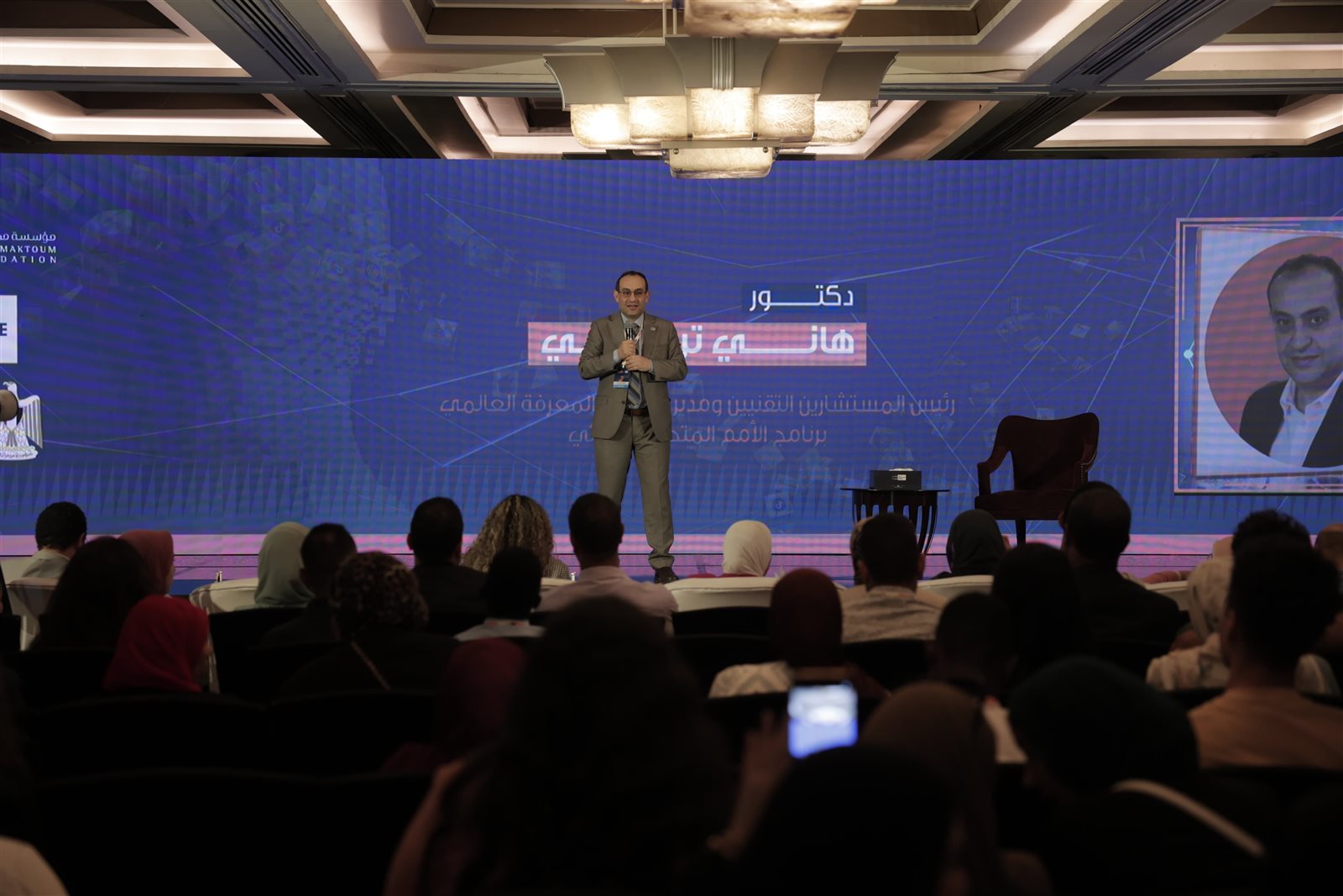 بينما أدار الحوار المفتوح حول تطلعات الشباب للمستقبل، الدكتور هاني تركي مدير مشروع المعرفة العالمي ببرنامج الأمم المتحدة الإنمائي، واستعرض بعض من المبادرات والفرص والبرنامج المتاحة مجانا للشباب، لتعظيم اسهاماتهم وتحقيق ما يصبو إليه شباب وطننا العربي من طموحات وتطلعات، وكيفية تأهيل الشباب الخريجين لسوق العمل، وأهم المهارات الواجب توافرها مستقبلا، ليكونوا سفراء لهذا الملتقى في نشر ثقافة المعرفة والابتكار في مجتمعاتهم، ليقودوا اوطانهم نحو مستقبل أكثر ازدهاراً.