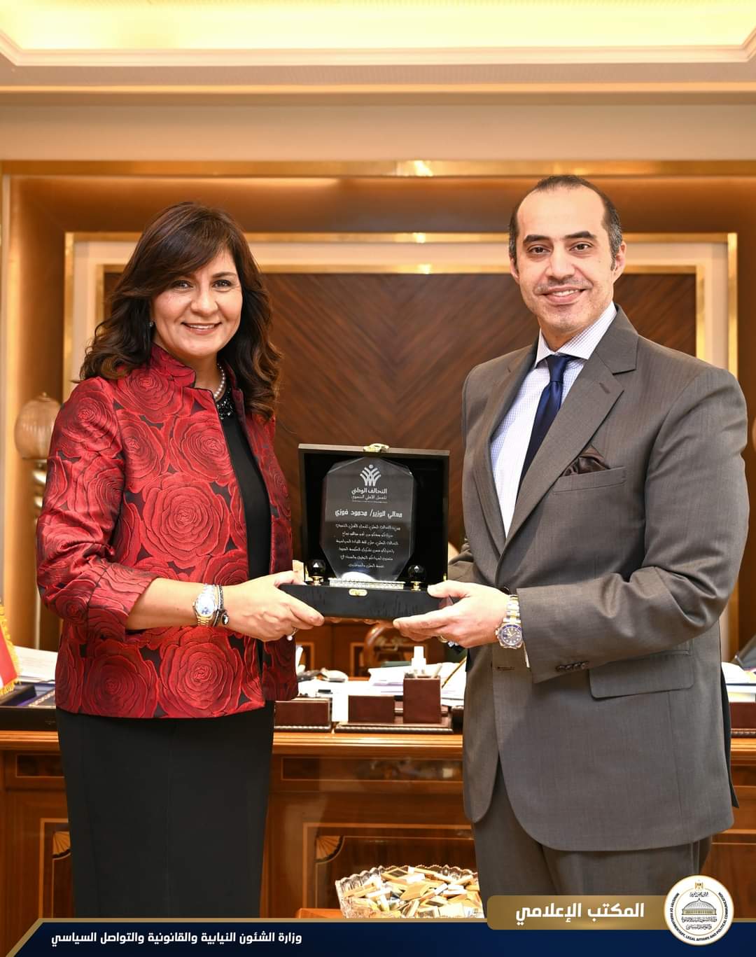استقبل المستشار محمود فوزي، وزير الشئون النيابية والقانونية والتواصل السياسي، السفيرة نبيلة مكرم، رئيس الأمانة الفنية للتحالف الوطني للعمل الأهلي التنموي، اليوم، الموافق ٤ سبتمبر 2024، بمقر الوزارة بالعاصمة الإدارية،  بحضور حاتم متولي،عضو اللجنة التأسيسية للتحالف، ووفد من أعضاء الأمانة الفنية للتحالف.
