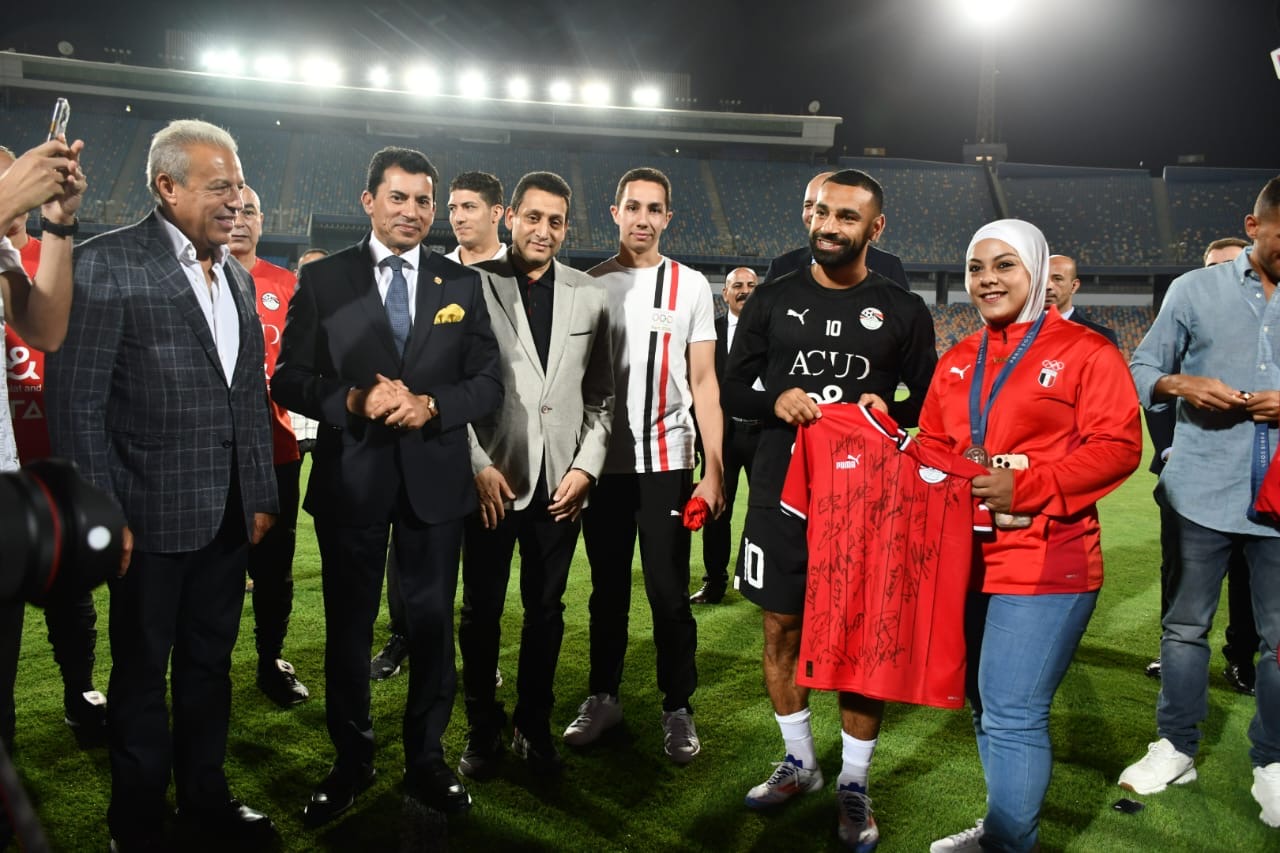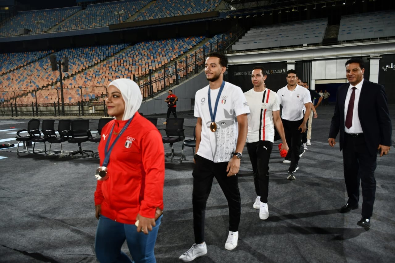 وعلي هامش المران، نظم لاعبي المنتخب الوطني ممر شرفي لأبطال أولمبياد باريس وهم أحمد الجندي صاحب الميدالية الذهبية في الخماسي الحديث، وسارة سمير صاحبه الميدالية الفضية في رفع الأثقال، محمد السيد صاحب الميدالية البرونزية في سلاح السيف، ومحمد جبر صاحب المركز الرابع في المصارعة، محمد حمزه صاحب المركز الخامس في سلاح الشيش.