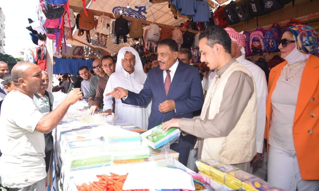 محافظ مطروح يقوم بتوزيع شنط مدرسية بالمجان خلال افتتاح معرض "أهلا مدارس":