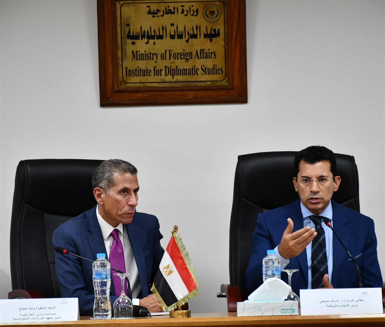 وأشاد الوزير بدور وزارة الخارجية المصرية من مختلف السفارات في دول العالم مع البعثات الرياضية التي أصبحت تتعدي ألف بعثة سنويًا، وكذلك إشادة سيادته بمعهد الدراسات الدبلوماسية العريق في تدريب وإثقال مهارات أبناء مدرسة الدبلوماسية المصرية، والعمل على إكسابهم المهارات اللازمة التي تؤهلهم للعمل بقطاعات وإدارات الوزارة، ومن ثم بعثات جمهورية مصر العربية في الخارج.
