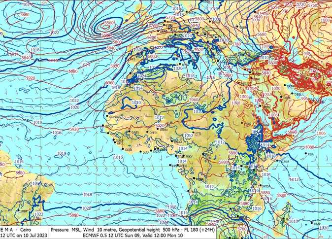 ويشهد الطقس اليوم ظهور للسحب المنخفضة والمتوسطة على مناطق من شمال البلاد حتى القاهرة الكبرى مما يؤدى إلى تلطيف الأجواء أحيانآ، حيث تسجل درجة الحرارة العظمى على القاهرة الكبرى 33درجة .