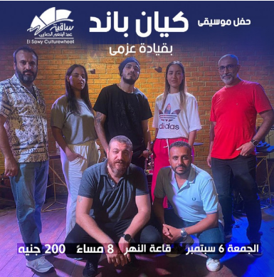 تستضيف ساقية عبدالمنعم الصاوي، حفل موسيقى لعازف الكمان "عزمي" مع فرقته "الكيان"، في الثامنة مساء اليوم الجمعة، بقاعة النهر فى تمام الساعة الثامنة مساءً، وسعر التذكرة ٢٠٠ جنيه.
