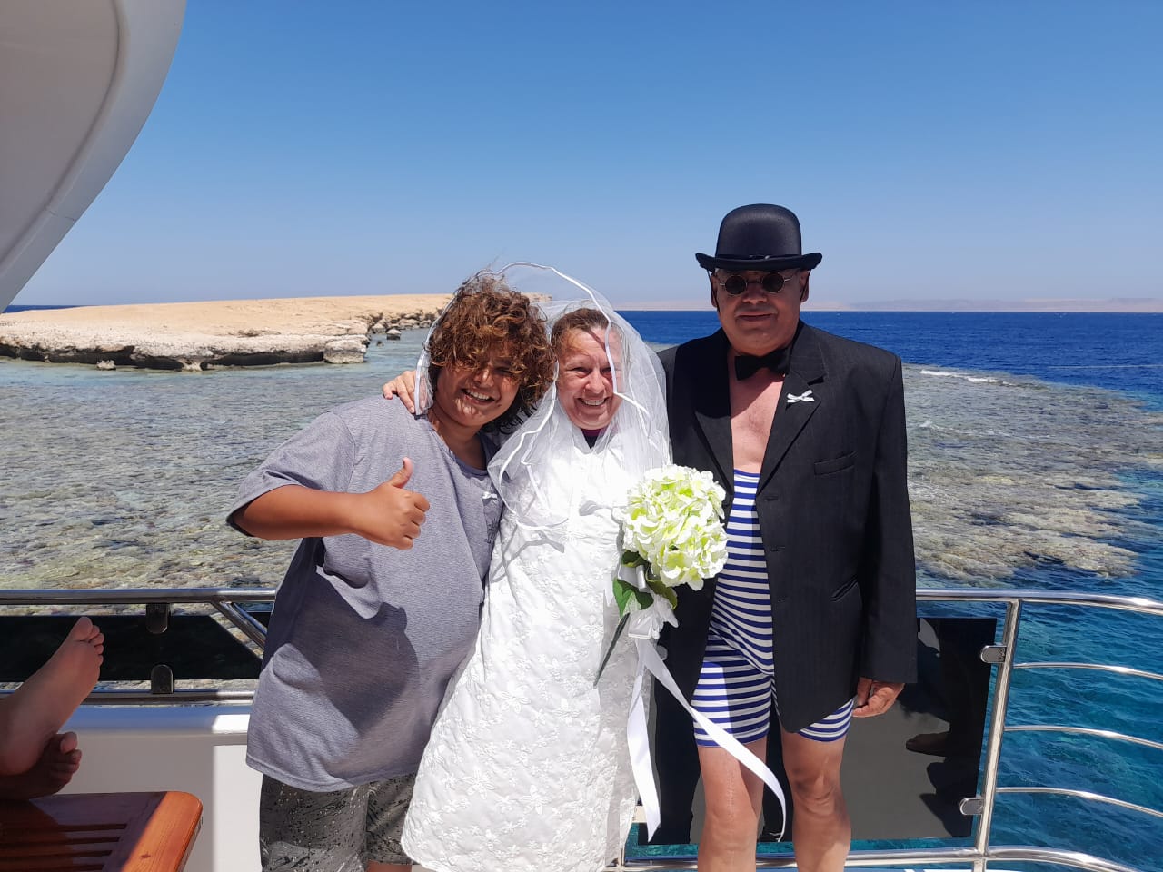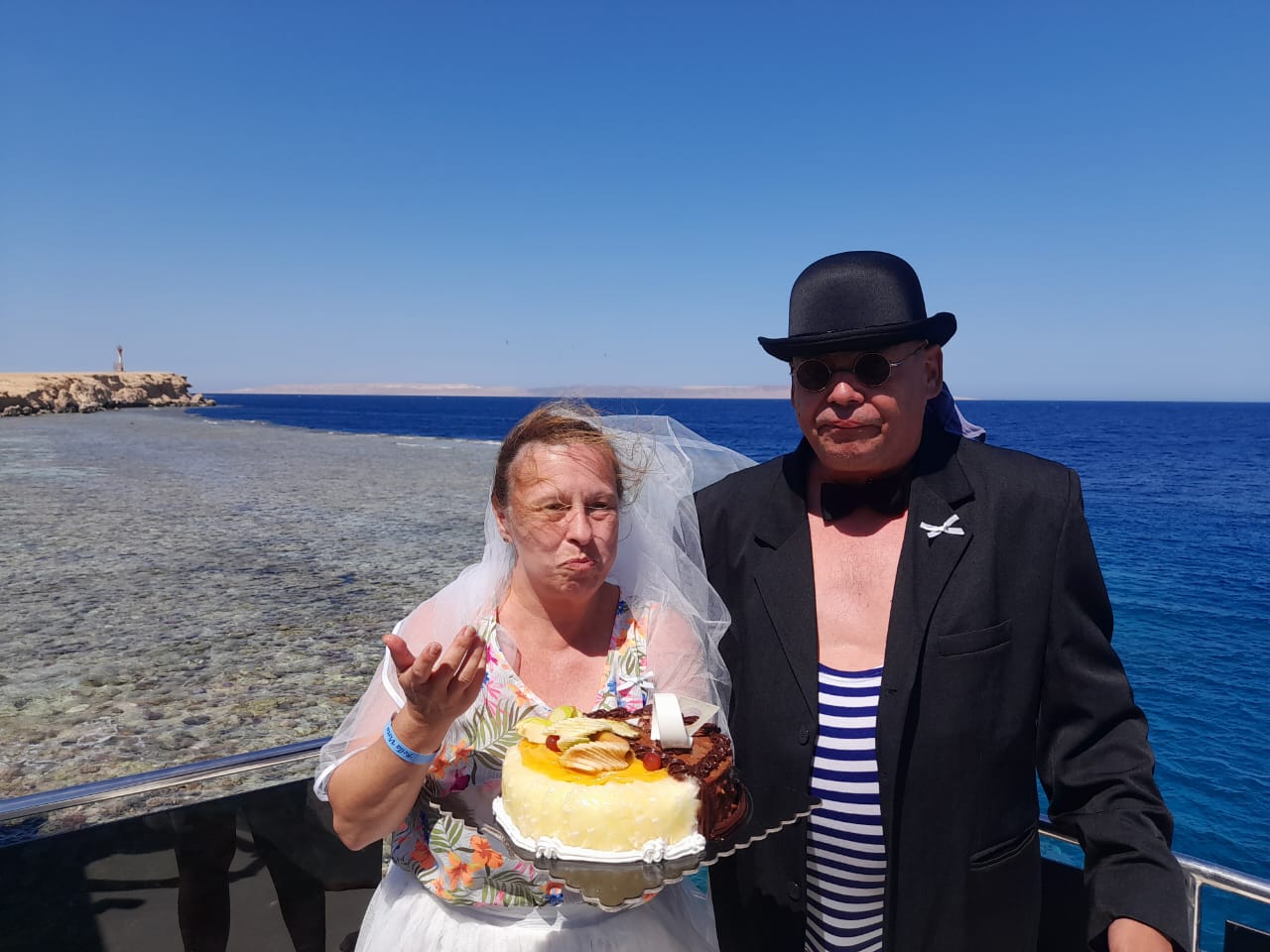 وقال احمد بيجو منظم رحلات بحريه في الغردقة أن السائحان من دولة التشيك في العقد السادس من العمر و بدأت مراسم الزفاف علي متن مركب سياحي أثناء رحلة بحرية علي شواطئ الغردقة بارتداء العروس "بولينا" فستان الفرح الأبيض وارتداء العريس"يورسلوف" بدلة الفرح وسط أجواء من الفرح والسرور بمشاركة عدد من السياح الأجانب والغطاسين والعاملين علي المركب السياحي والرقص علي انغام الموسيقى وتبادل التهاني والتبريكات .