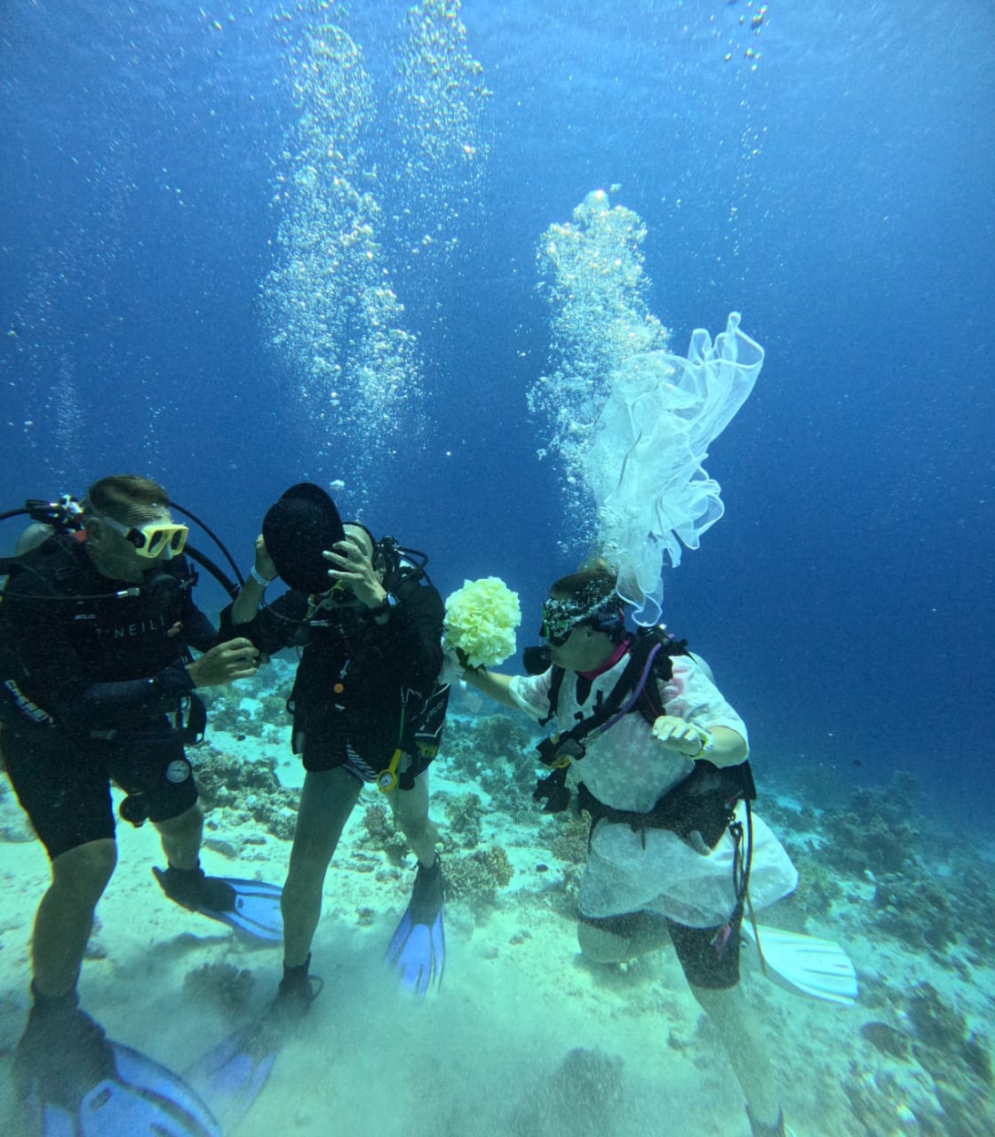 سائحان مسنان يحتفلان بزفافهما في أعماق البحر بالغردقة