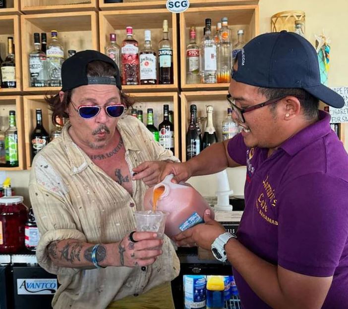 ظهر الممثل الأمريكي الشهير جوني ديب في حالة معنوية مرتفعة أثناء زيارته لمقهى High Tide في جزر الباهاما، بينما كان يودع أيام الصيف القليلة الباقية قبل العودة إلى الولايات المتحدة.