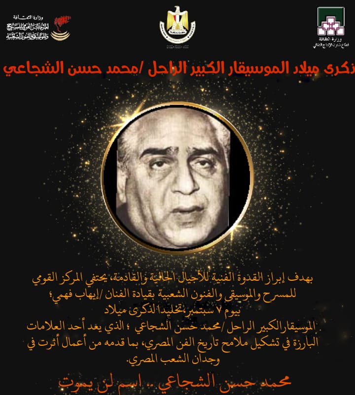 ويأتي إحياء ذكراه بهدف إبراز القدوة الفنية للأجيال الحالية والقادمة، وذلك تخليدًا لذكرى ميلاد الموسيقار الكبير محمد حسن الشجاعي، ويعد هو أحد العلامات البارزة في تشكيل ملامح الفن المصري، بما قدمه من أعمال أثرت في وجدان الشعب المصري.