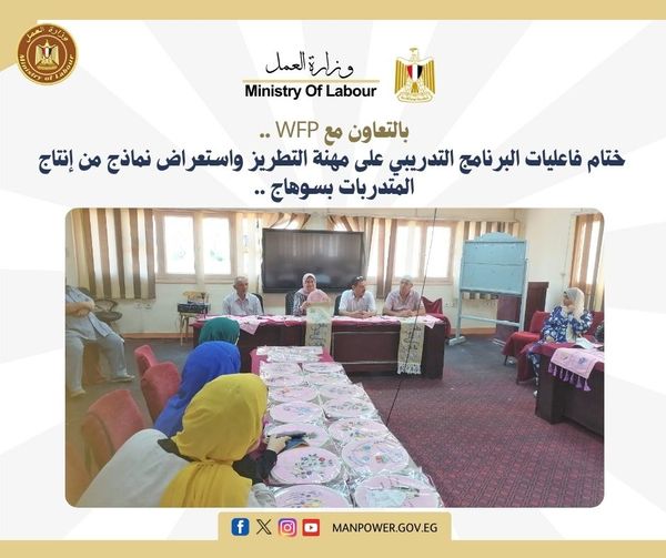 اختتمت مديرية العمل بمحافظة سوهاج، البرنامج التدريبي المجاني على مهنة التطريز اليدوي والذي جرى تنفيذه على مدار 36 يوم تدريبي، بمركز التدريب المهني بسوهاج، وذلك فى إطار التعاون المشترك بين وزارة العمل وبرنامج الأغذية العالمي WFP التابع للأمم المتحدة، فى مجال التدريب وتنمية مهارات الشباب من الجنسين على المهن الأكثر طلبا في سوق العمل للمساهمة في خفض معدلات البطالة ، ورفع مستوى الدخل للشباب وتوفير الحياة الكريمة لهم ونشر ثقافة  العمل الحر وريادة الأعمال.