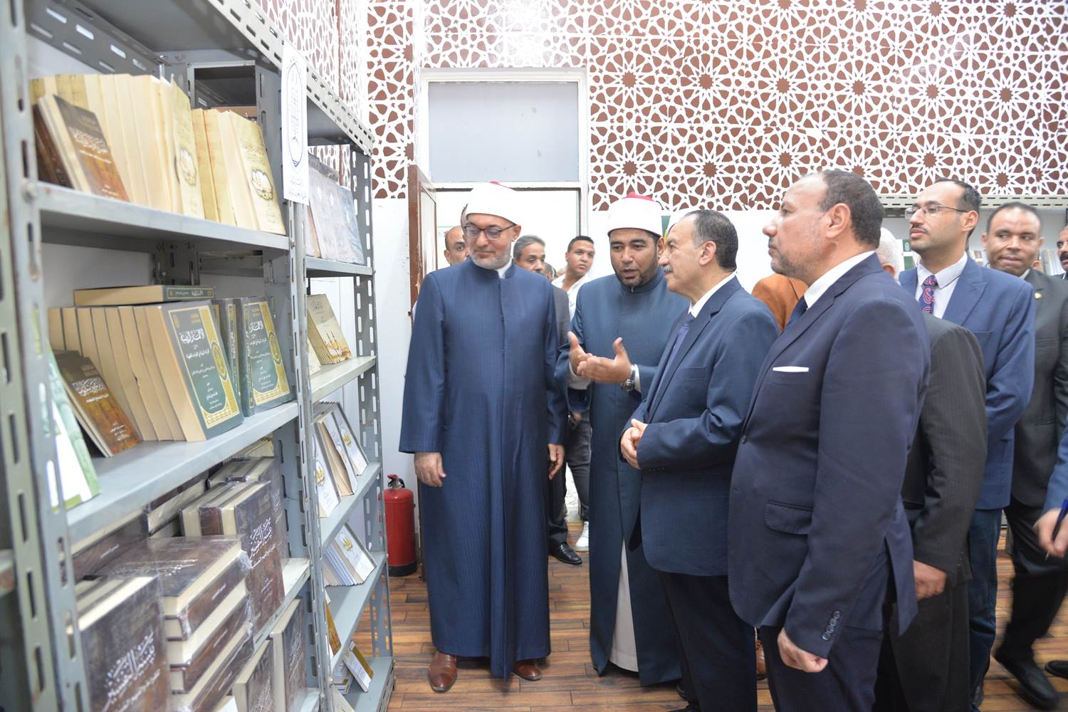 حيث تفقد مفتي الديار المصرية ومحافظ أسيوط ومرافقوهم أقسام المنفذ واستمعوا لشرح تفصيلي عن الكتب وإصدارات مجمع البحوث الإسلامية وما يحتويه المعرض الدائم من كتب ومدى استفادة الزائرين من الباحثين والطلاب وغيرهم.