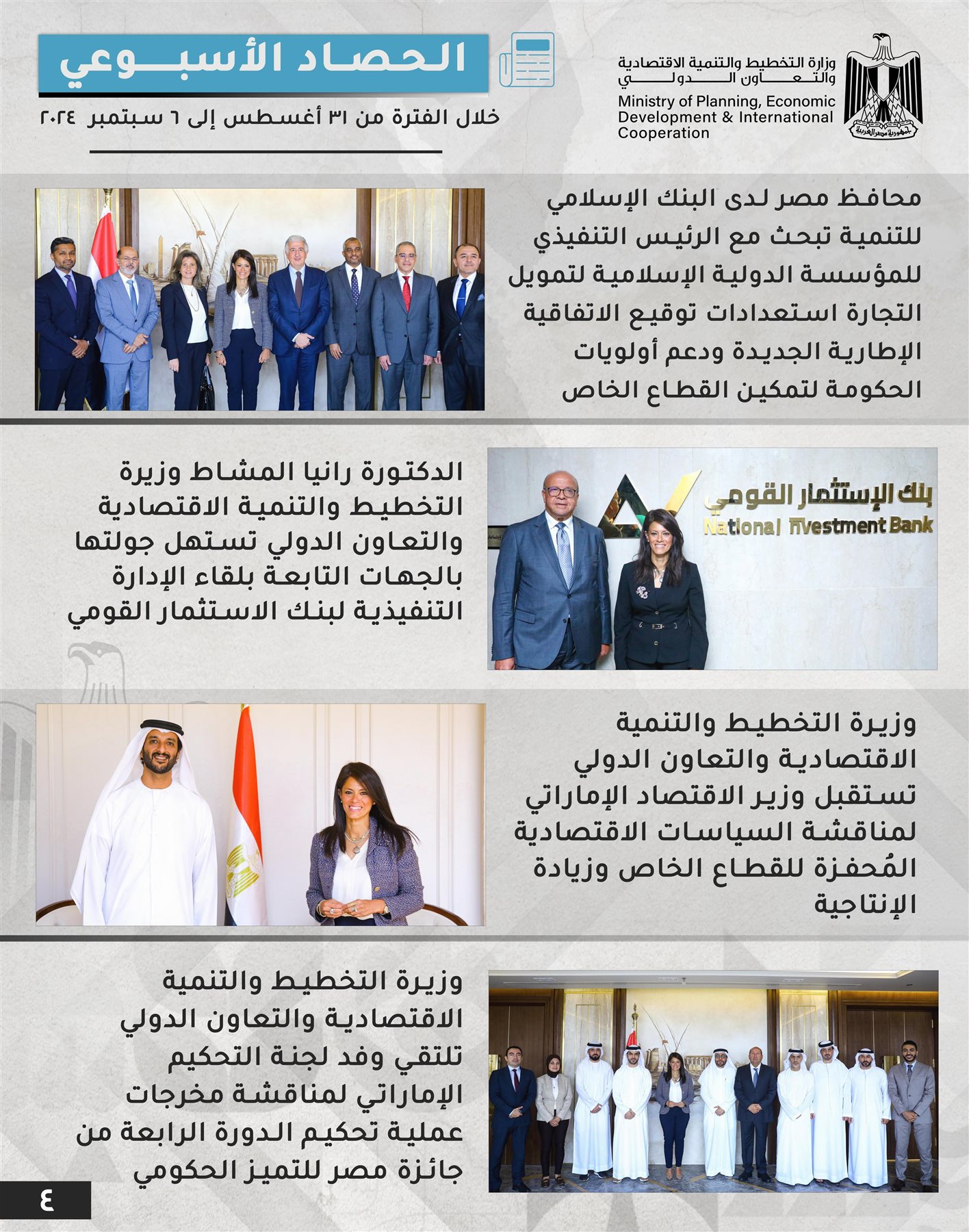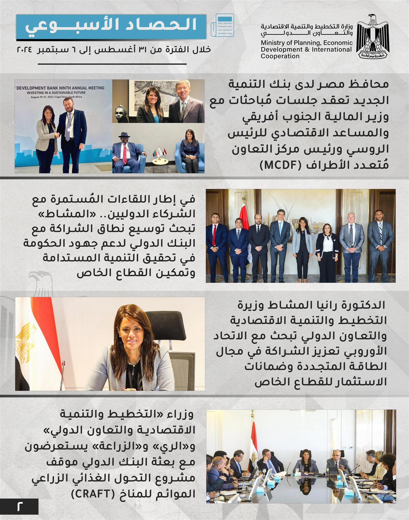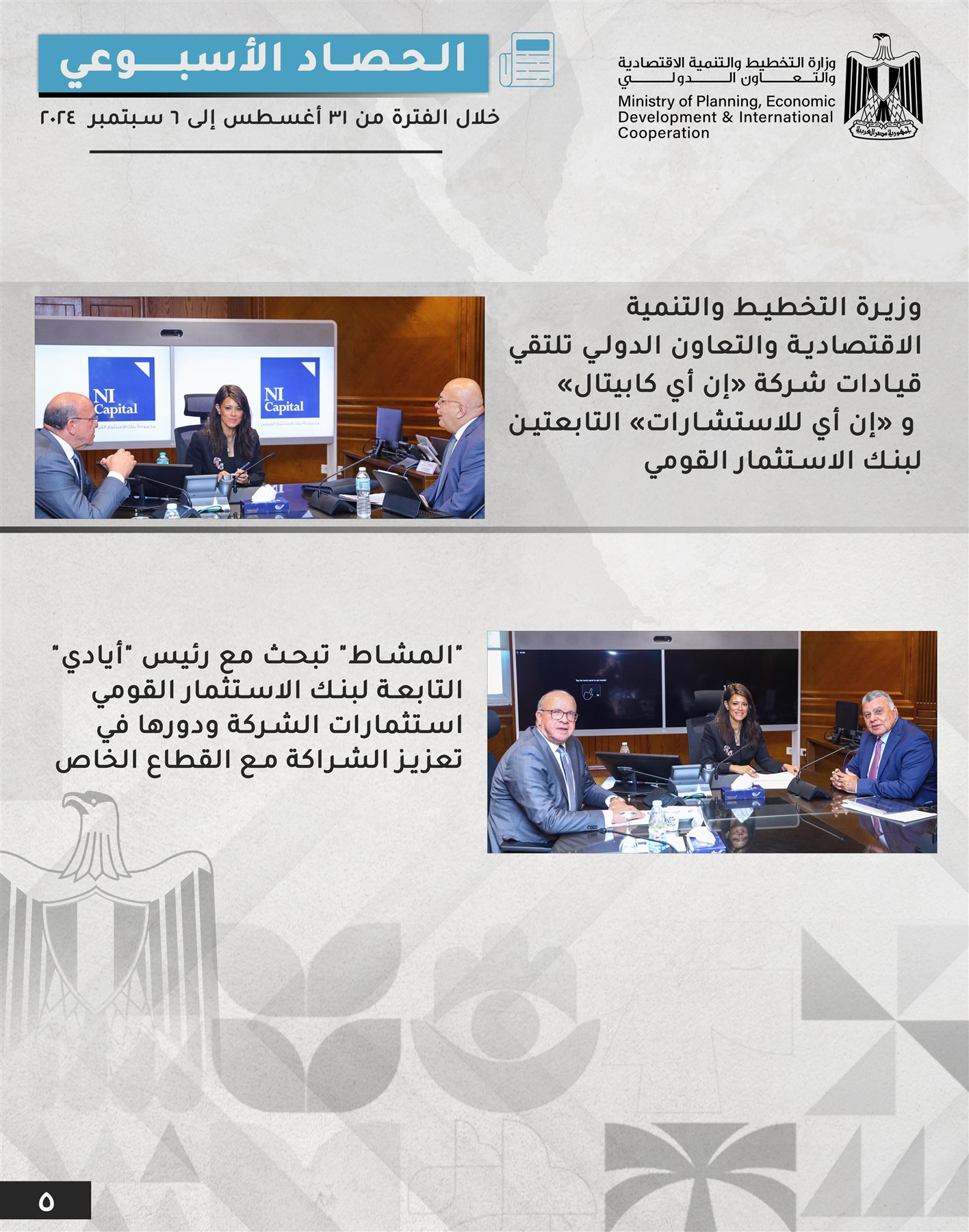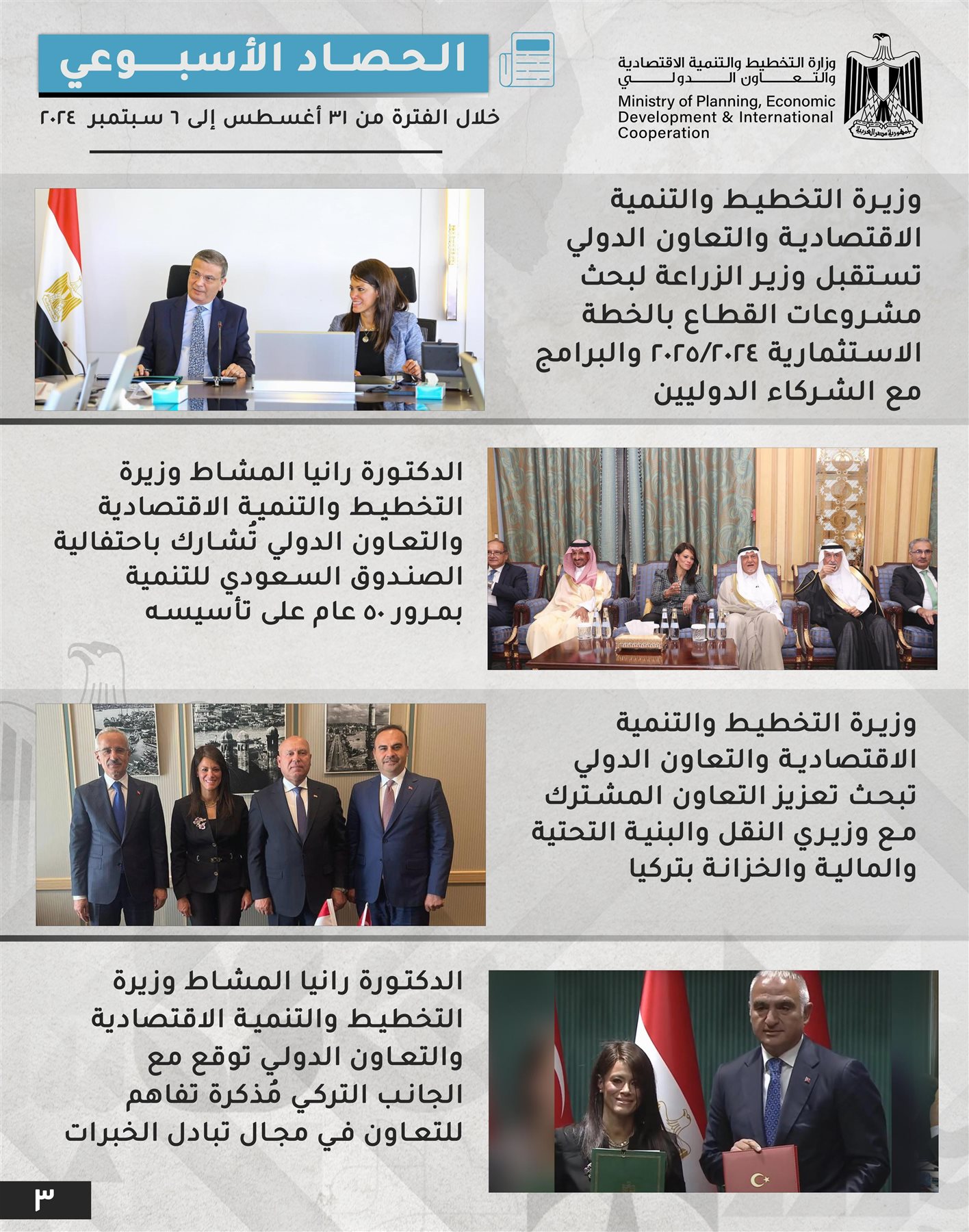 التخطيط والتنمية الاقتصادية والتعاون الدولي تُعلن الحصاد الأسبوعي لأنشطة وفعاليات الوزارة