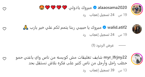 كما أكد العريس مهند وهو الشقيق الأصغر لـ أمح الدولي الأمر، إذ كتب منشور عبر حسابه الرسمي على فيسبوك قائلًا :" الحمد لله الذي تتم بنعمته الصالحات، قرينا الفاتحة اليوم، بمن اختارها الله لي، ومن اختارها قلبي، ومن قررت أن أكمل نصف ديني معها".