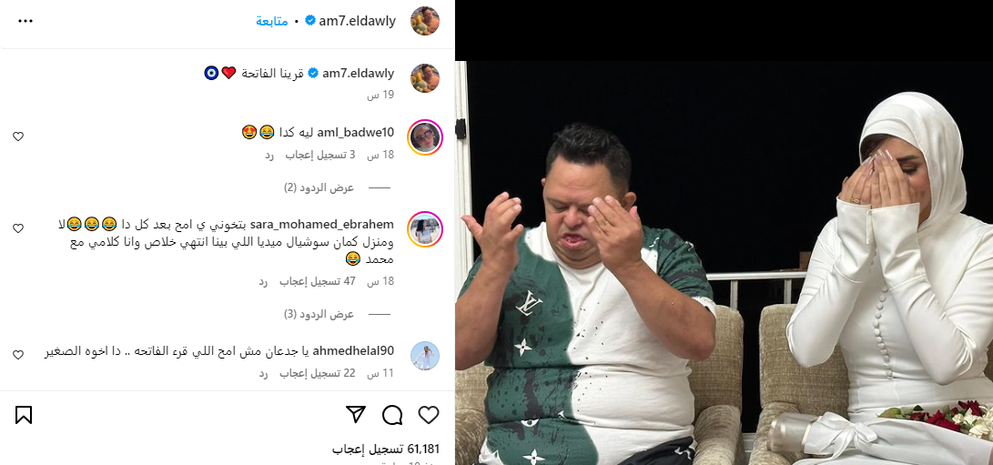 إلا أن هناك مجموعة من المتابعين أوضحوا الحقيقة بعد أن اختلط على متابعيه الأمر، وظنوا أنها حفلة خطوبته ليؤكد بعض الناس في التعليقات بأنها ليس خطوبته ولكنها خطوبة أخيه الأصغر إذ قالوا، " مش هو ده فاتحه أحد من أقاربه"، " يا جدعان مش امح اللي قرء الفاتحه .. دا اخوه الصغير".