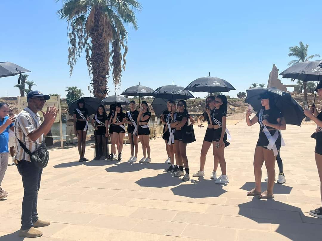 ورافق ملكات جمال العالم خلال زيارتهن معابد الكرنك، الطيب غريب، مدير معابد الكرنك، والذي قدم شرحا كاملا عن الحضارة المصرية القديمة وما تتضمنه معابد الكرنك.