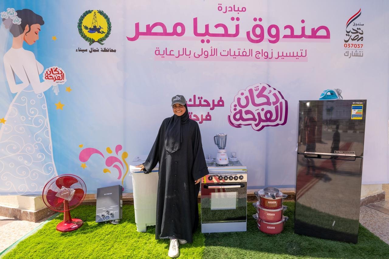 من جانبه، قال المدير التنفيذي لصندوق تحيا مصر، تامر عبد الفتاح، إن قافلة الحماية الاجتماعية تضمنت تنظيم أكبر معرض كساء بمحافظة شمال سيناء للأسر الأولى بالرعاية ضمن فاعليات مبادرة دكان الفرحة بهدف إتاحة الفرصة للأسر المستهدفة لاختيار ما يناسبهم كهدية من الصندوق، ويضم المعرض 40 ألف قطعة ملابس وأحذية وإكسسوارات وأواني للطهي ومفروشات، ويُتيح المعرض لكل أسرة فرصة اختيار 15 قطعة متنوعة تلبي احتياجاتها، بحرية تامة وبدون مقابل من المعرض.