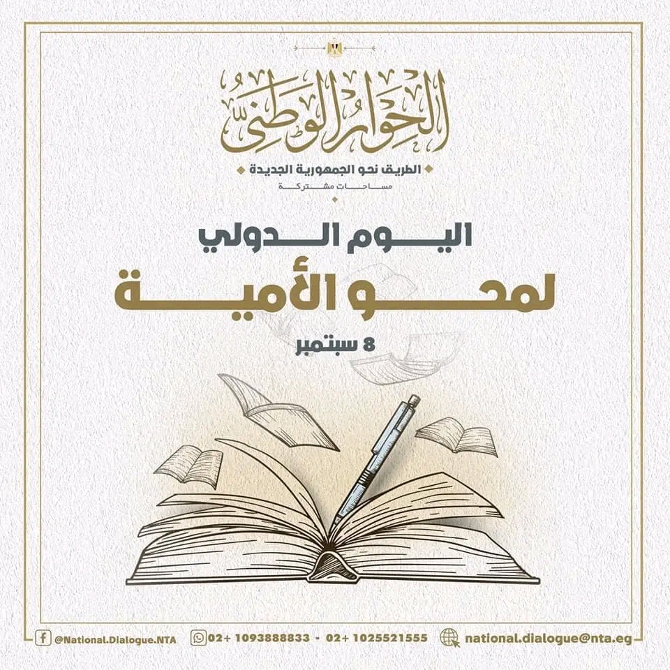 أحيت إدارة الحوار الوطني اليوم الدولي لمحو الأمية، مؤكدة أنه بالعلم تبنى الأمم وتزدهر الأوطان، فالأمة المتعلمة هي ركيزة التنمية الشاملة والمستدامة للمجتمعات.