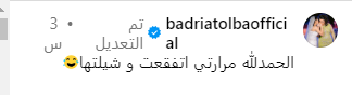وكشفت طلبة تعرضها لأزمة صحية مفاجئة، مما أدى إلى خضوعها لعملية جراحية لاستئصال المرارة، فعلقت على الصورة قائلة : “الحمد الله مرارتي اتفقعت وشلتها”.