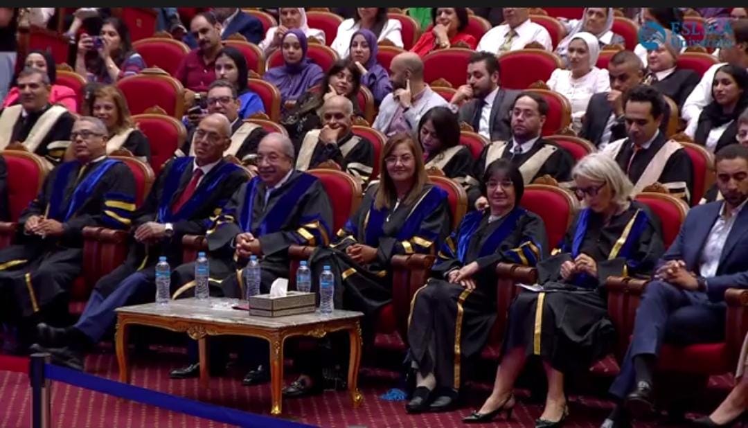 كرمت جامعة إسلسكا الدكتورة هالة السعيد مستشار رئيس الجمهورية للشئون الاقتصادية، أثناء حضورها حفل تخرج دفعة جديدة من برنامج ماجيستير ودكتوراه إدارة الأعمال.
