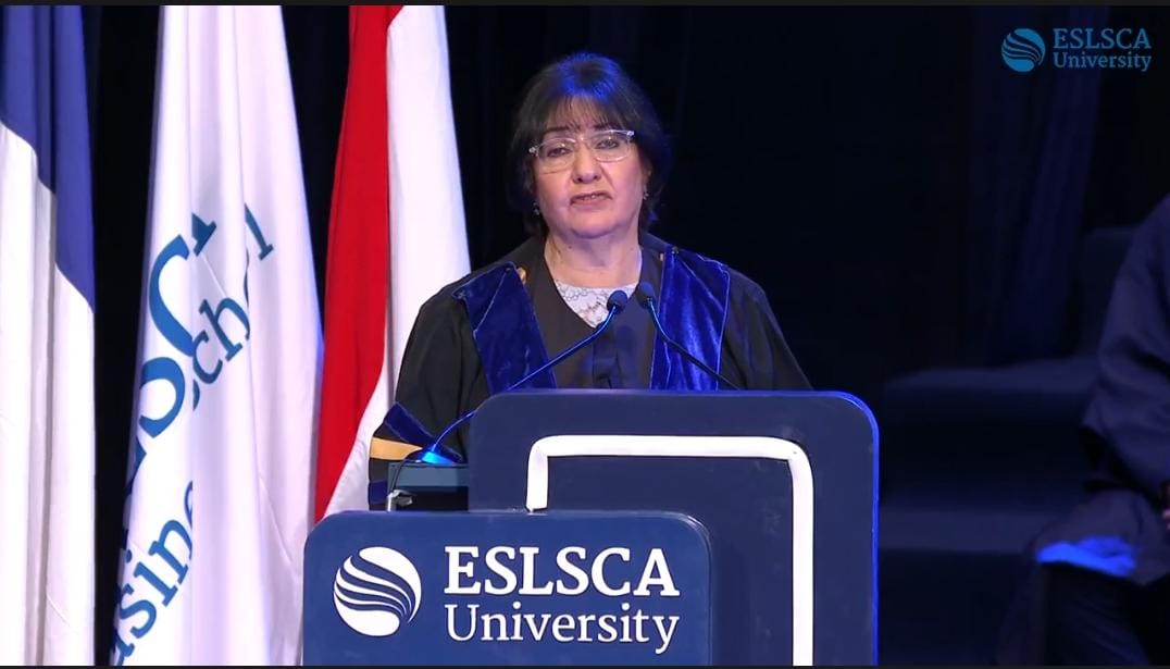 وسلم الدكتور على المليجي، رئيس مجلس أمناء جامعة إسلسكا، التكريم للدكتورة هالة السعيد في حضور الدكتورة نادية العارف رئيس الجامعة، والدكتورة فرانسواز كروز الرئيس الأكاديمي لاسلسكا باريس، والدكتور كريم الحناوى الأمين العام للجامعة، ولفيف من أعضاء هيئة التدريس بالجامعة.