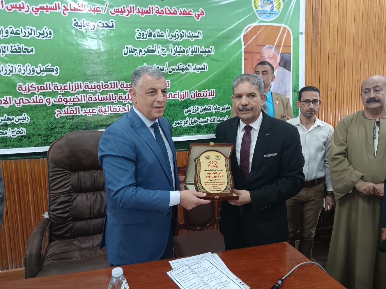 وفي نهاية الاحتفالية، قدم وكيل وزارة الزراعة بالإسماعيلية، درع المديرية للواء طيار أ.ح أكرم محمد جلال محافظ الإسماعيلية، تقديرًا لمجهوداته والدعم الذي يقدمه لقطاع الزراعة.