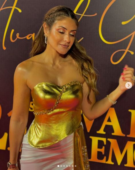 وبدت هيدي كرم بإطلالة لافته، تنتمي للعصر اليوناني وتشبه كثيرًا الطابع الاغريقي، حيث ارتدت توب مجسم باللون الذهبي ونسقت عليه جيب بيضاء اتسمت بشق مثير كشفت عن أحد ساقيها، مستعرضة قوامها الرشيق وذوقها المتمرد على الخضوع لأرض الواقع.