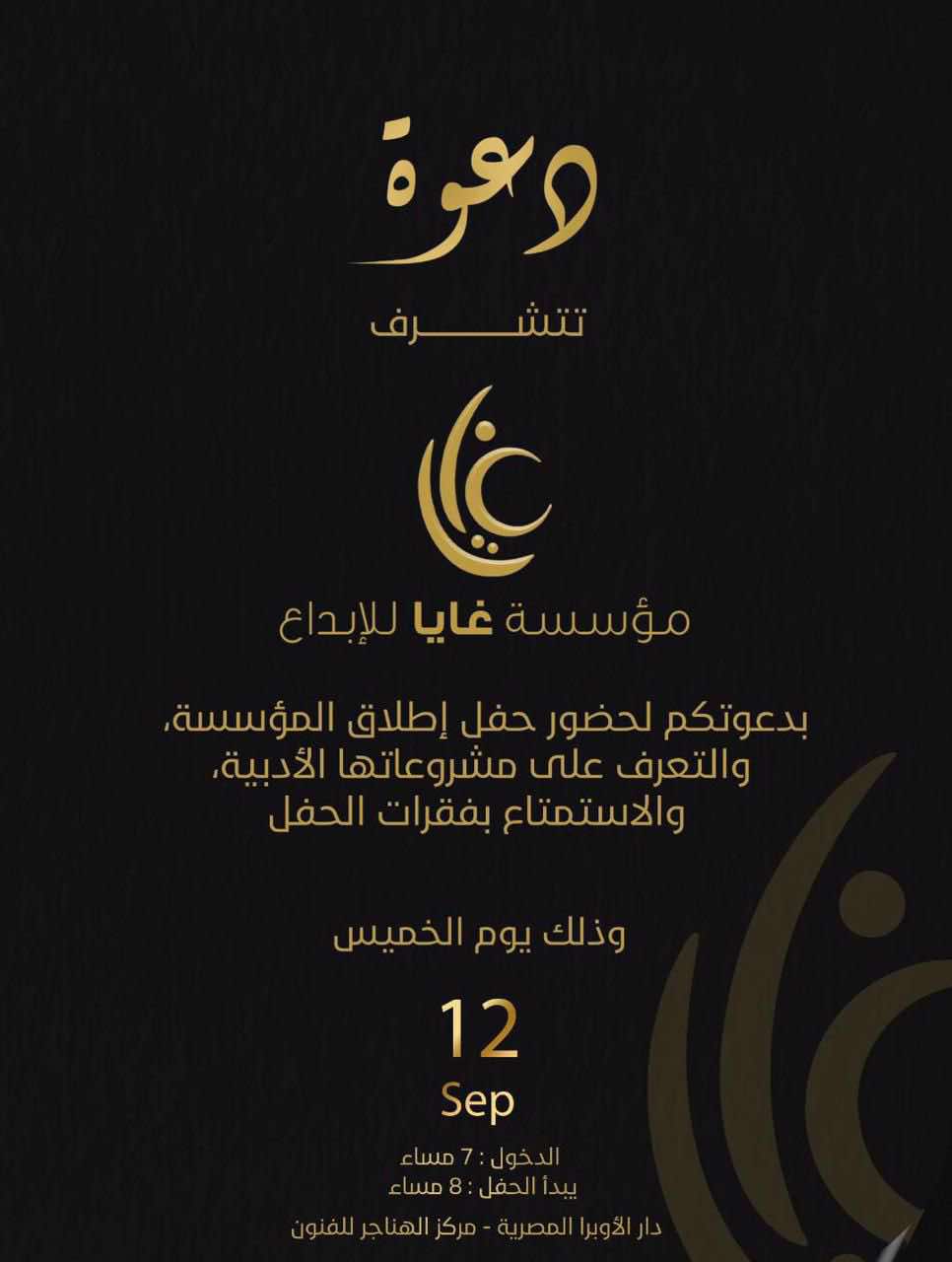 جدير بالذكر ان مؤسسة غايا للابداع تاسست للمساهمة فى استكمال مسيرة الابداع المصرى وتاكيد دورها الريادى والحضارى ، وسعيا لمد جسور التواصل مع الثقافات العالمية المختلفة ، ويضم مجلس ادارتها عدد من الشخصيات البارزة فى مجال العمل الثقافى هم الدكتورة امل ربيع ، الدكتور هيثم الحاج على ، عماد العادلى ، مصطفى الفرماوى والدكتورة نانسى ابراهيم.
