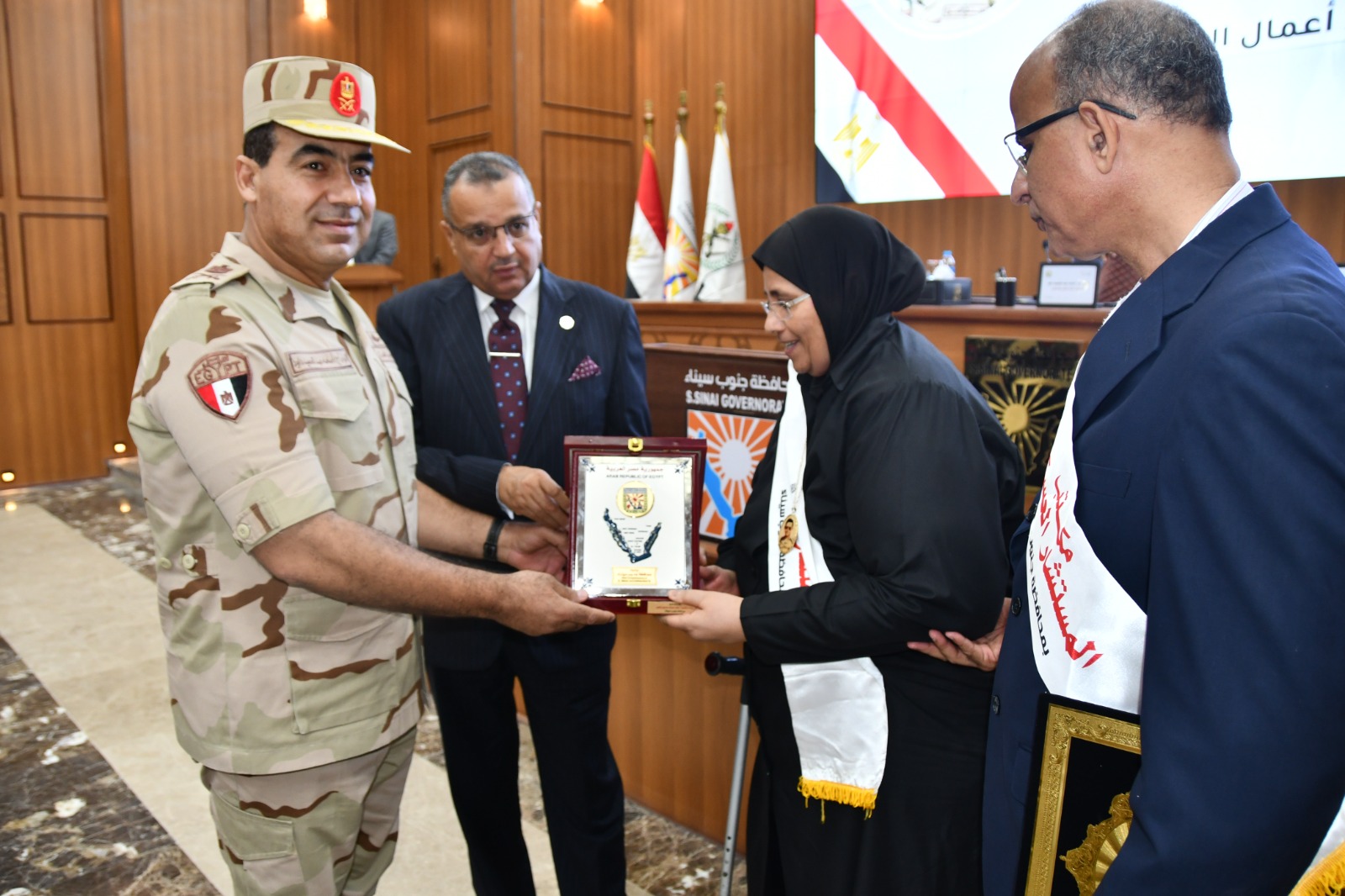 وخلال اللقاء الذي عقد بقاعة الاجتماعات الكبرى بديوان عام المحافظة تم عرض فيلم وثائقي عن محافظة جنوب سيناء، وآخر عن قوات الدفاع الشعبي والعسكري وتم استعراض الملامح الرئيسية للتدريب العملي المشترك لمجابهة الأزمات والكوارث ، ثم عرض تقارير السكرتير العام والمديريات والمراكز ثم قام محافظ جنوب سيناء وقائد القوات بتكريم اسرة الشهيد البطل النقيب محمود ناجي العواد أحد شهداء العمليات العسكرية بسيناء.