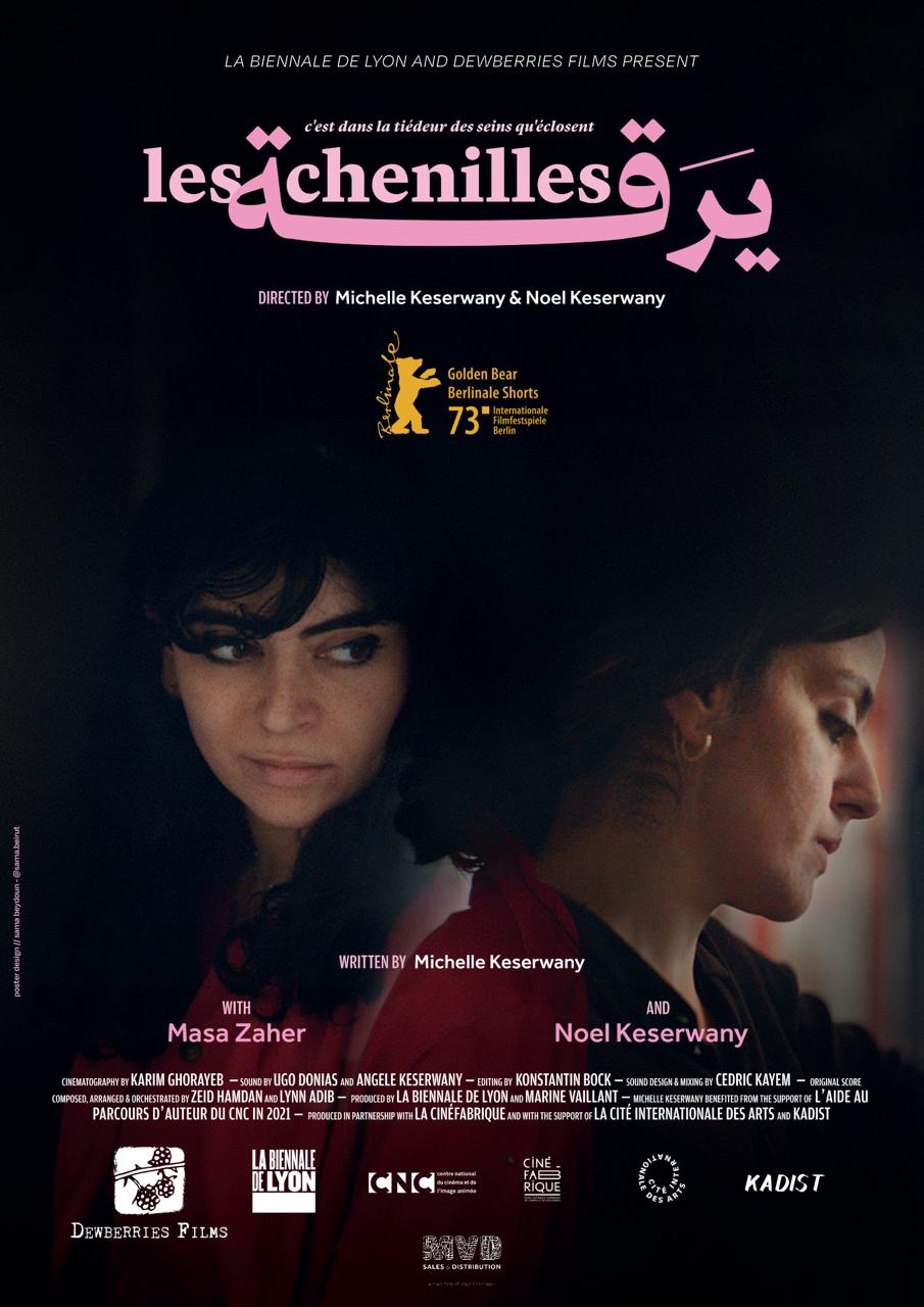فيلم يرقة من تأليف ميشيل كسرواني وتشاركها الإخراج شقيقتها نويل كسرواني التي تقوم ببطولة الفيلم إلى جانب ماسا زاهر، وإنتاج Dewberries Films، وBiennale de Lyon، والمنتجة مارين ڨاييان، وتتولى Lights On مبيعات الفيلم عالميًا، بينما تتولى MAD Distribution حقوق التوزيع والمبيعات للفيلم في العالم العربي.