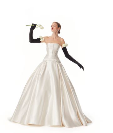 وجاء فستان الزفاف بصيحة الكورسية في مقدمة القائمة المفضلة لصاحبات القوام الطويل الرشيق، ليطغى بحضور غير مسبوق على مدارج العروض لموسم خريف وشتاء 2024، وكان الفستان الساتان المنفوش المصمم من دون أكمام من مجموعة ماركة مادلين جاردنر Madeline Gardner النسخة المطابقة لستايل فساتين الأربعينيات والخمسينيات، ولتكتمل الطلة الأيقونية لائميه مع عقد قصير من اللؤلؤ، وارتدي قفازات الأوبرا الطويلة السوداء على غرار العارضة.