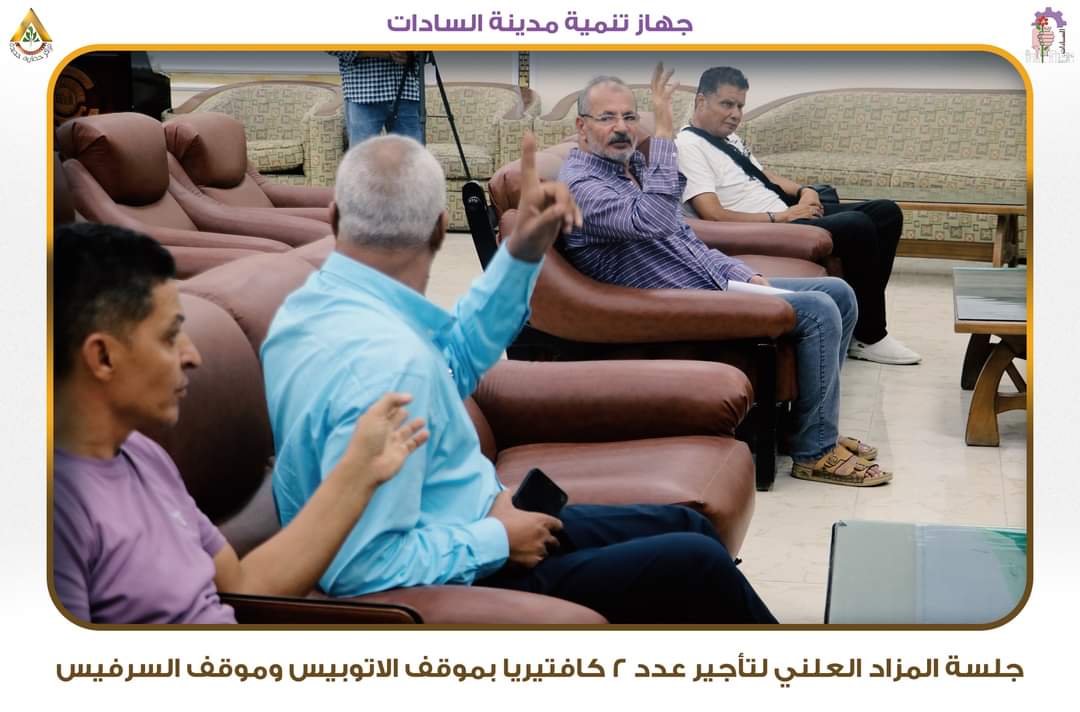 شهد جهاز تنمية مدينة السادات ، اليوم ، عقد جلسة مزاد علني بقاعة الاجتماعات بمقر الجهاز، أسفرت عن تأجير كافتيريا موقف الاتوبيس وكافتيريا موقف السرفيس .