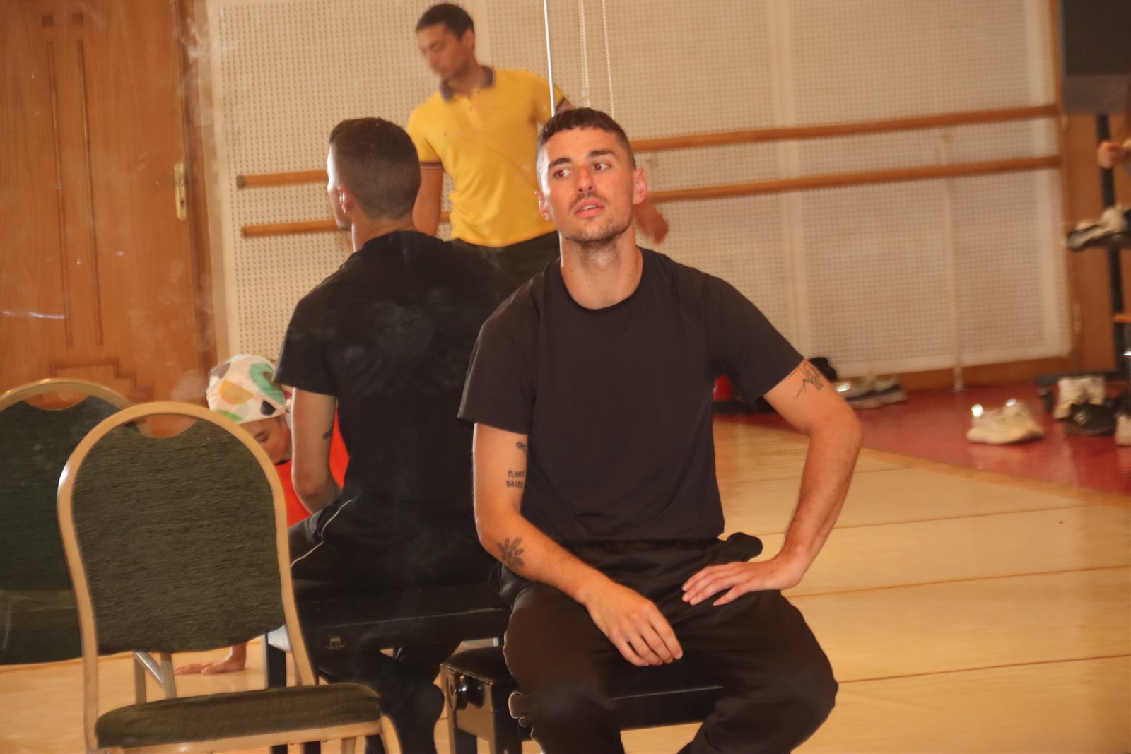 بدأت الورشة بالجانب النظري، حيث تحدث "چاستين" عن تكنيك جديد عن الرقص الجسدي، وعن كيفية اكتشاف الجسد، بطريقة مختلفة، وأوضح أن الأداء الحركي قائم على علاقة توازن بين الجسد والأرض، وهي لغة جديدة في الرقص، قام بتسميتها "خيط وأبرة".