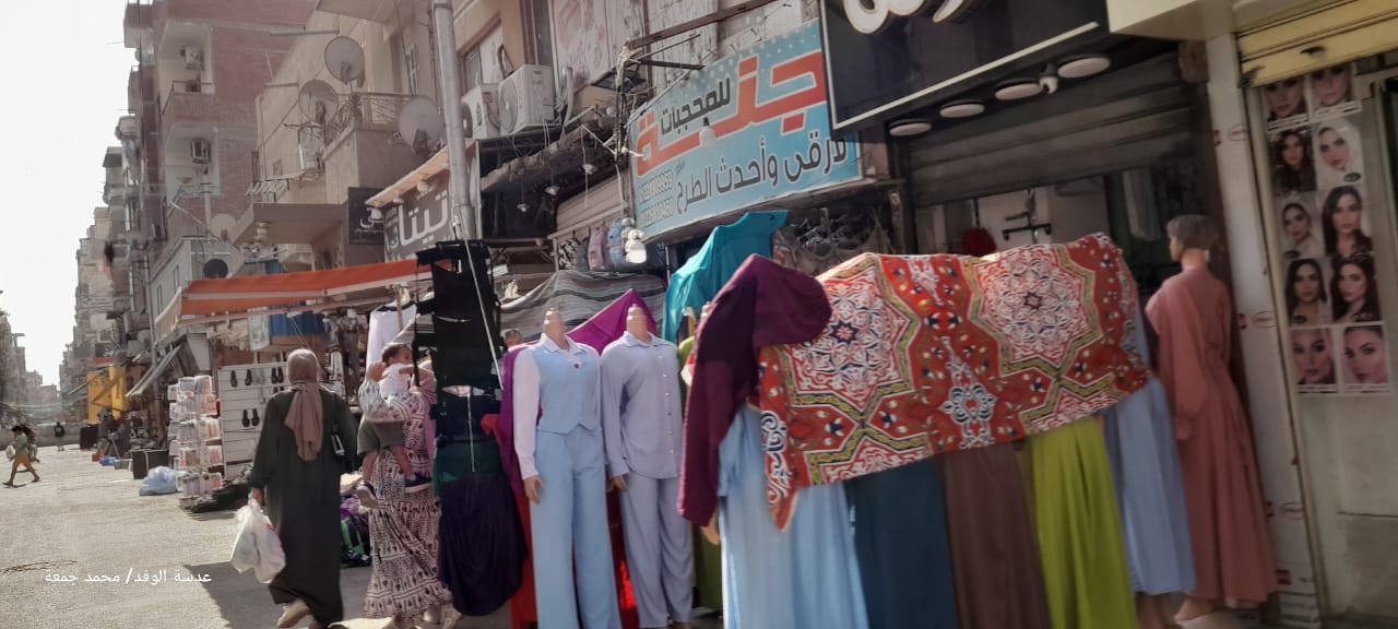 وجاء ذلك نتيجة افتراش أصحاب المحلات بالمليكنات والطربيزات والاستندات الحديدية أمام المحلات فى تحدى سافر لقانون المحليات